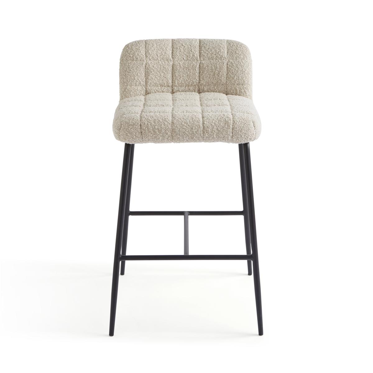 * Counter height* Soft boucle upholstery* Metal legs The Caden bar stool in tonal boucle offers a unique and stylish seating option for your bar or kitchen. The boucle fabric features a distinctive, looped texture that adds depth and character to the stool, creating a chic and inviting look. The tonal variation in the boucle material enhances its visual appeal, making it a standout piece in any interior. This bar stool is designed for comfort and durability, providing a cozy seating experience while maintaining a sophisticated aesthetic.
