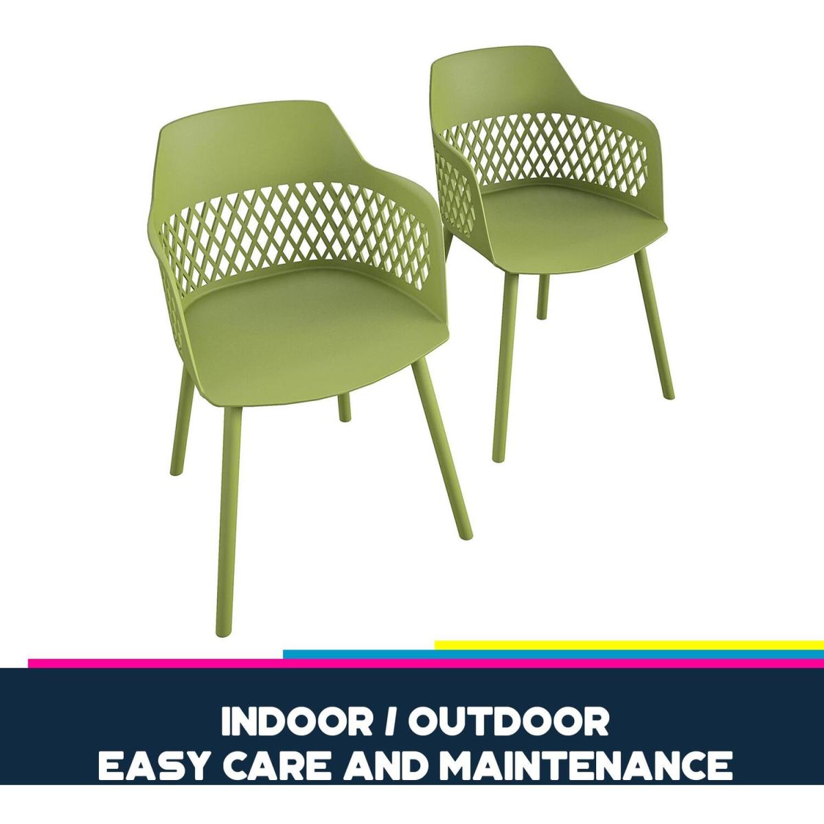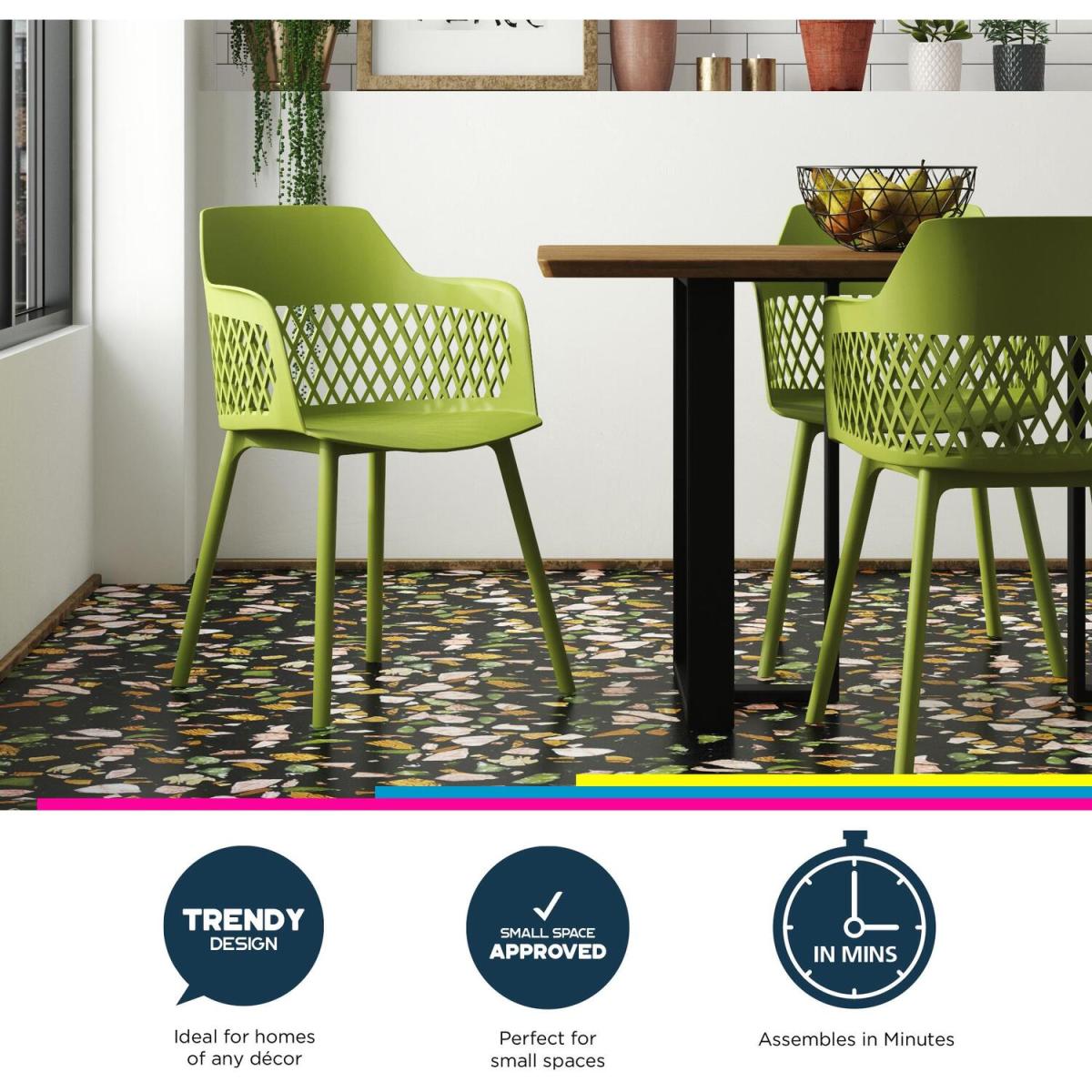 I really like these chairs for their fresh, modern vibe - the Kiwi Green shade adds a pop of colour that's perfect for outdoor spaces but also works well in bright, contemporary interiors with a playful touch. They’re versatile enough to be styled alongside natural materials like wood or to bring contrast to more neutral, minimalist schemes. Practical tips include pairing them with a light-toned outdoor table for a cohesive look or using colour accessories such as cushions or potted plants to tie the space together. Because of their design, they’re equally suited for both garden patios and indoor conservatories, making them a flexible choice for adding colour and comfort to various spaces.