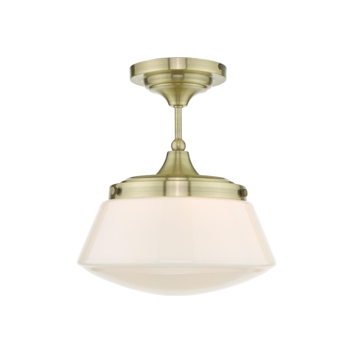 I really like this semi-flush in the opal glass and antique brass finish - it offers a vintage-inspired look with a touch of modern elegance. It works particularly well in traditional or eclectic interiors where classic brass accents are a feature, but it can also add a warm, retro feel to contemporary spaces. Practical styling tips include pairing it with warm-toned decor to enhance the brass finish or using multiple in a hallway or landing for consistent lighting. It’s versatile enough to suit living rooms, bedrooms, or even kitchens, providing both functional illumination and a stylish focal point. Keep the surrounding decor minimal and let the brass detail and semi-flush design add character without overwhelming the space.