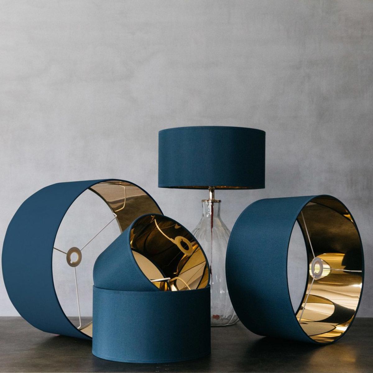 Traditional drum shades with a contemporary twist, our cadet blue cotton light shades have a striking gold metallic inner that beautifully reflects light around the room.