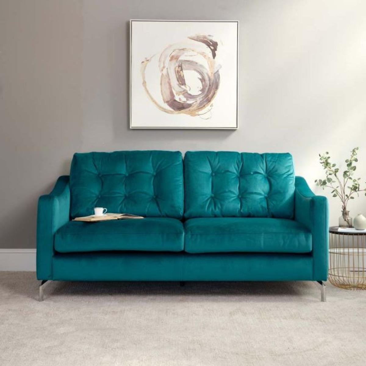 The Cadiz 3 Seat Sofa seems perfectly designed for the vibrant Ocean velvet material. With just the right amount of luxury, it is supportative yet incredibly comfortable. Beautiful detailing gives the upholstery a sumptuous feel that will in with any home decor styles. Also available in a other stunning colours. Dimensions: W190cm x H94cm x D93cm, Seat Height: 47cm. Curved arm design Chrome legs. Simple self assembly