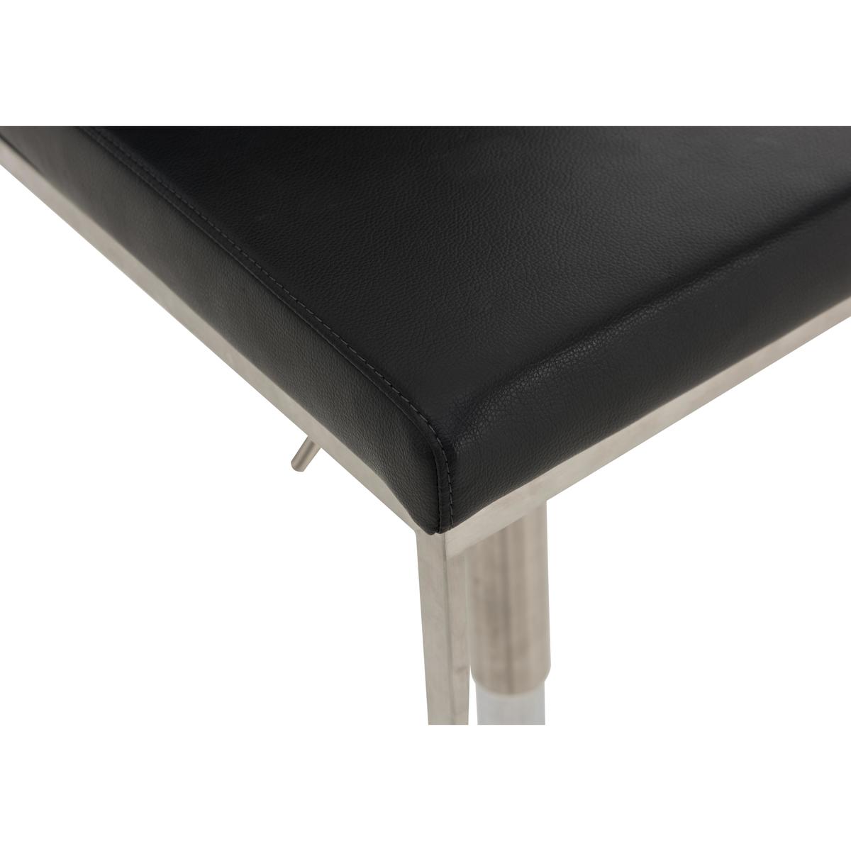 Combining the elegance of a formal dining chair with the style of a bar stool, the Cadiz bar stool is the perfect seat for your fashionable kitchen dining space. Beautifully designed and with a brushed stainless steel frame and circular base, this contemporary bar stool features a well-cushioned seat and supportive back, both upholstered in a durable leather-like fabric that’s available in a selection of on trend colours and finishes. The angular integrated foot rest ensures that this bar stool is completely comfortable for the sitter. Entirely adjustable, the Cadiz bar stool swivels through 360° and also can be smoothly lowered and raised with the easy to operate gas-powered lift action. **Simple self assembly required**.