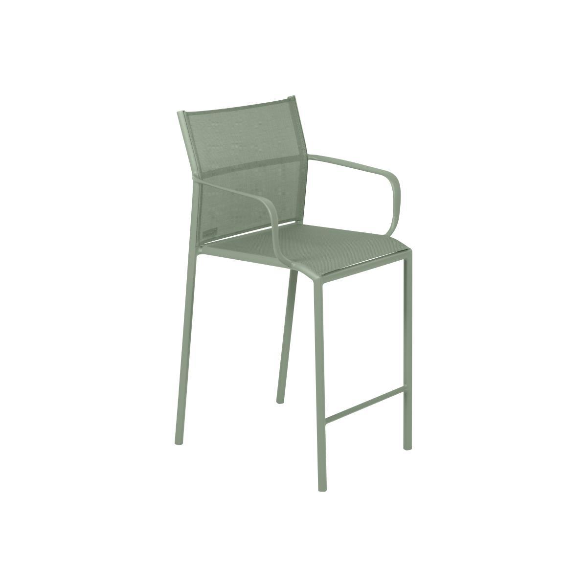 Cadiz is a generous range of seats with incomparable comfort. This collection offers five models with an inviting look, each adapted to your different needs: chair, bridge, low armchair, two stools. This high bridge with its singular silhouette perfectly combines lacquered metal and an outdoor canvas covering the seat and backrest. In addition to providing comfort and flexibility, this Batyline® fabric is tear-resistant and has excellent stain, mould and deformation resistance. The aluminium structure gives Cadiz flexibility and remarkable manoeuvrability: so you can move it from room to room, inside and out. The modern design of this high bridge stands out for the break in the lines of the seat and backrest. Its armrests are the result of a real technical feat! They are hydroformed and come from state-of-the-art aerospace technology that transforms a straight tube into a thin, curved, arching armrest. In addition, Cadiz meets certain environmental criteria: designed to optimise material, it is a lightweight seat (3. 4 kg) that’s easily movable. Very elegant whatever its colour, Cadiz combines with all styles, fitting in inside and out in all seasons.