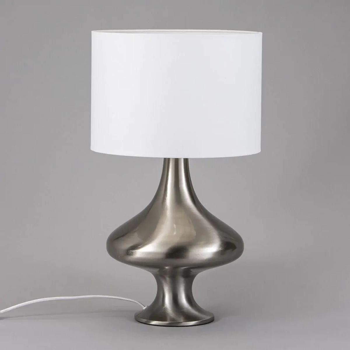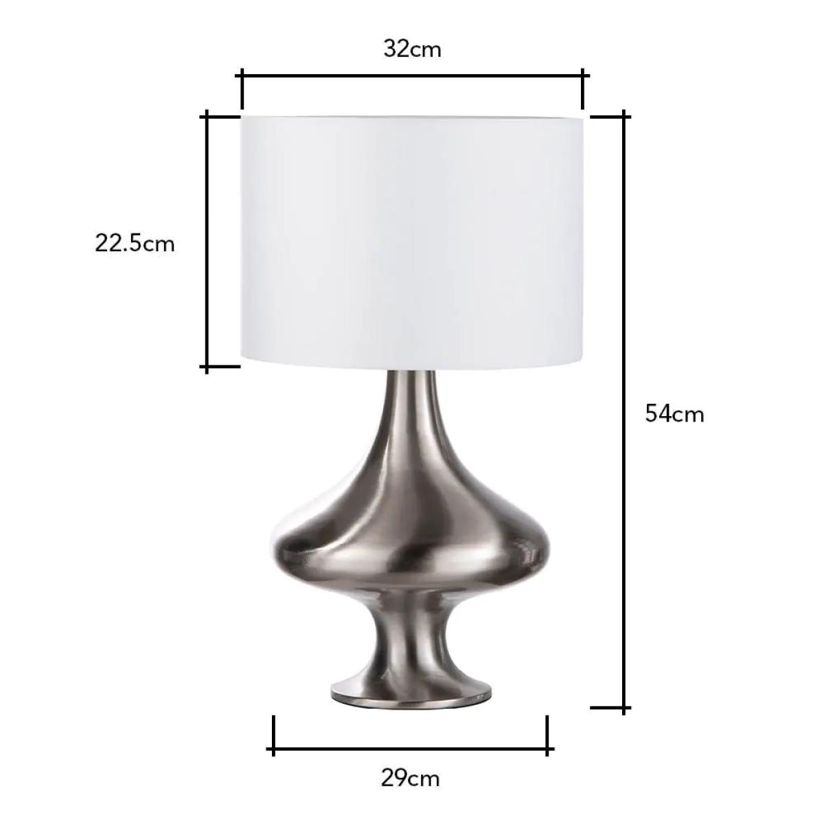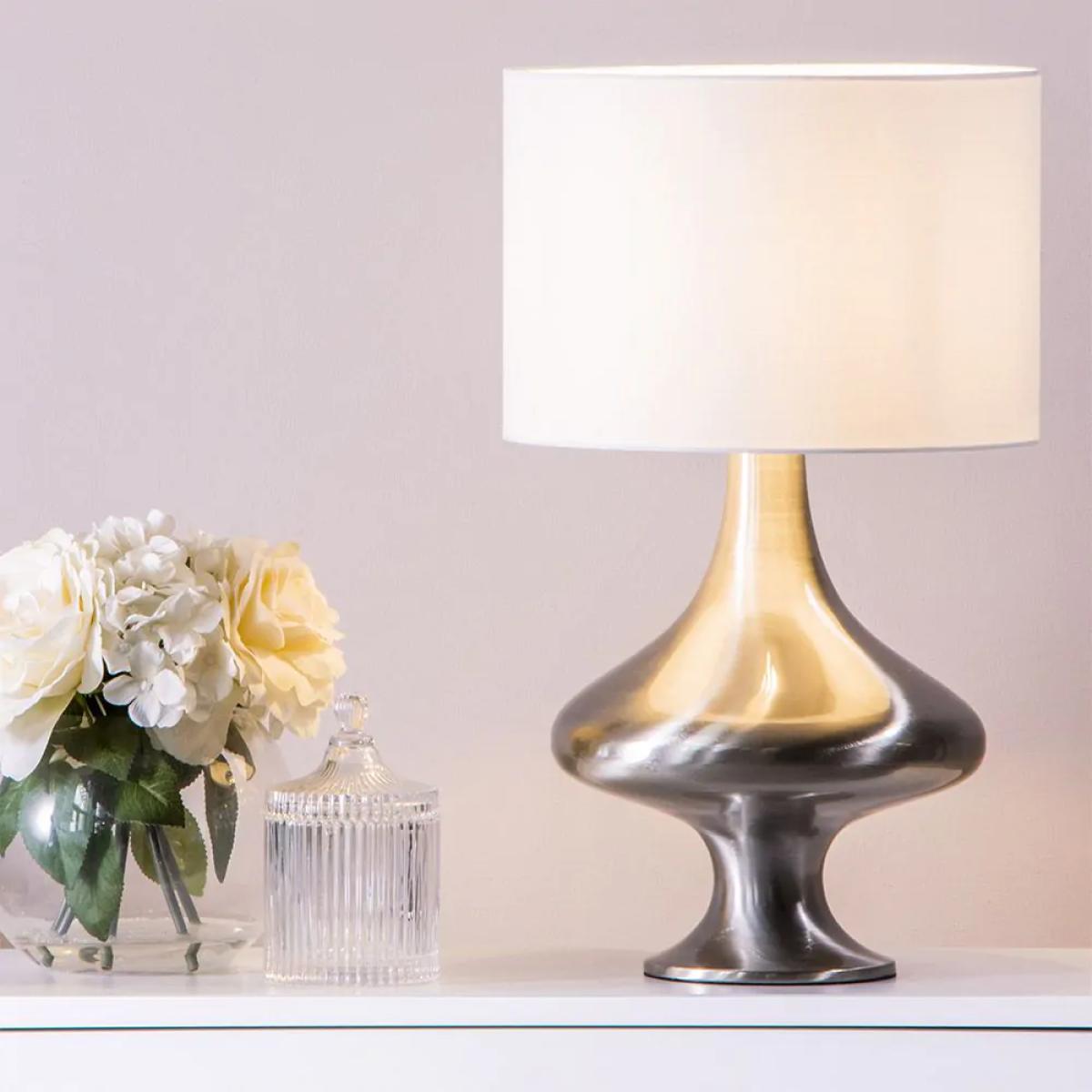 I love this lamp for its sleek, modern look and versatile profile. The satin nickel finish pairs effortlessly with both contemporary and minimalist interiors, adding a touch of sophistication without overpowering the space. Its clean, white shade provides a soft, diffuse light, making it ideal for side tables in living rooms, bedroom nightstands, or even office environments. For styling tips, consider pairing it with other metallic accents or textured ceramics to create a balanced and cohesive look. It works well in neutral colour schemes, but can also serve as a subtle statement piece in more colourful or patterned spaces, ensuring both function and style are seamlessly integrated.