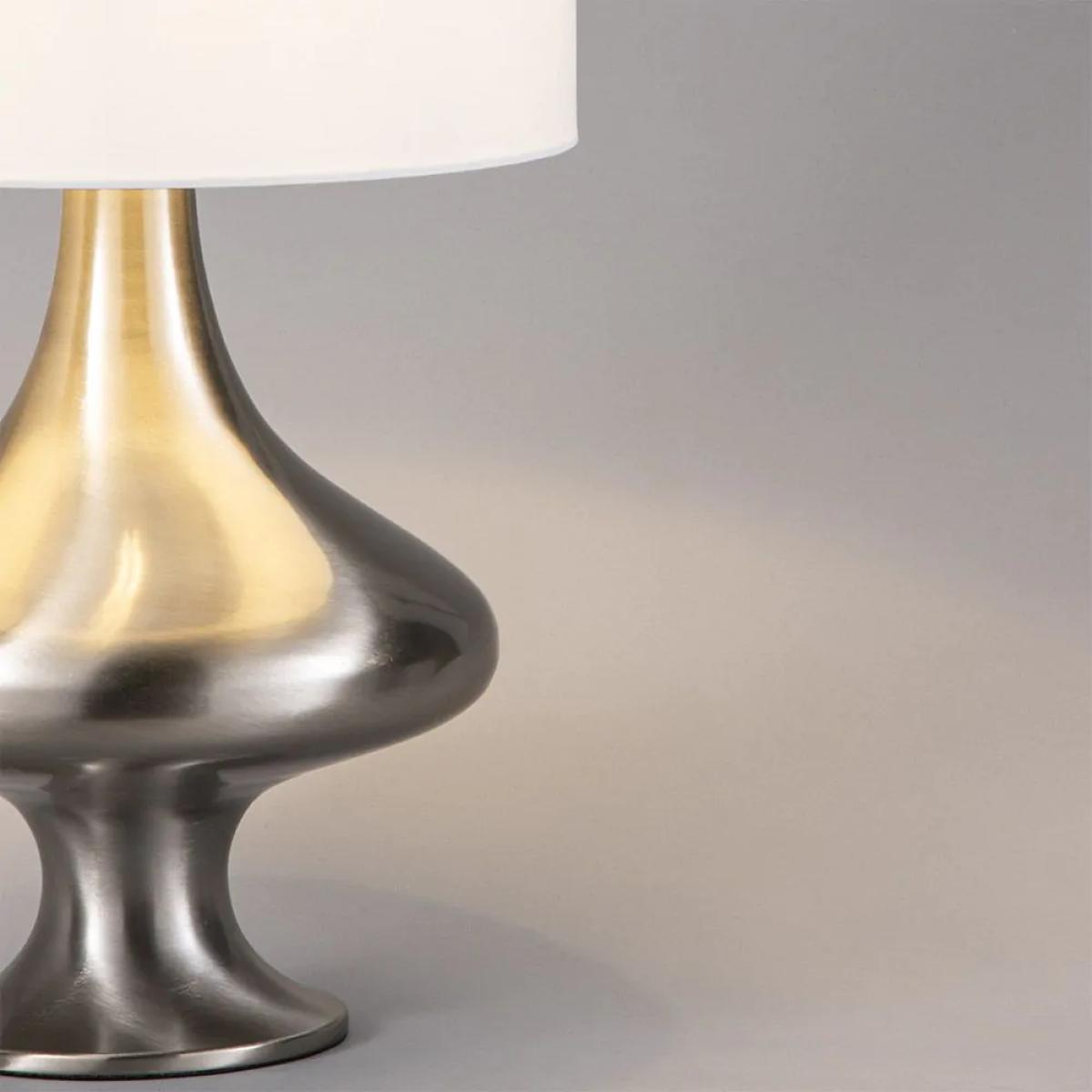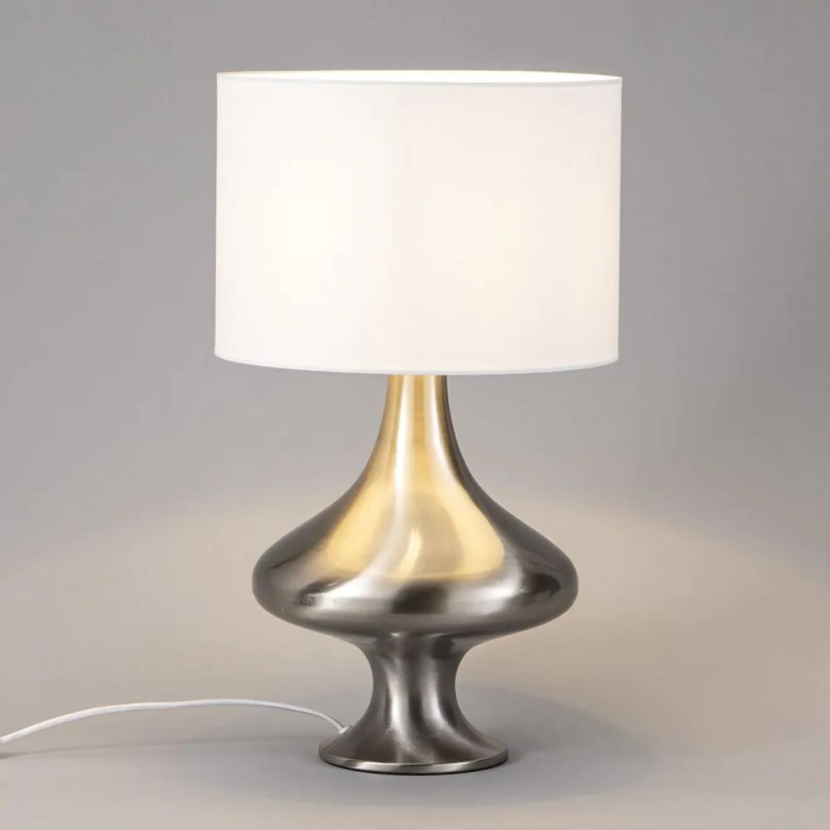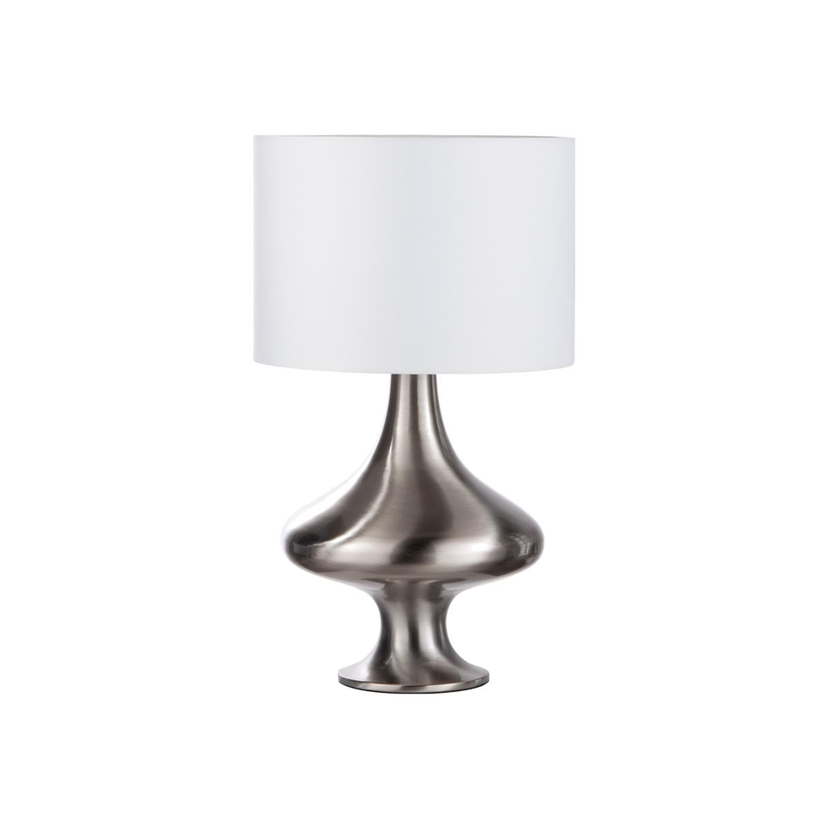 I love this lamp for its sleek, modern look and versatile profile. The satin nickel finish pairs effortlessly with both contemporary and minimalist interiors, adding a touch of sophistication without overpowering the space. Its clean, white shade provides a soft, diffuse light, making it ideal for side tables in living rooms, bedroom nightstands, or even office environments. For styling tips, consider pairing it with other metallic accents or textured ceramics to create a balanced and cohesive look. It works well in neutral colour schemes, but can also serve as a subtle statement piece in more colourful or patterned spaces, ensuring both function and style are seamlessly integrated.