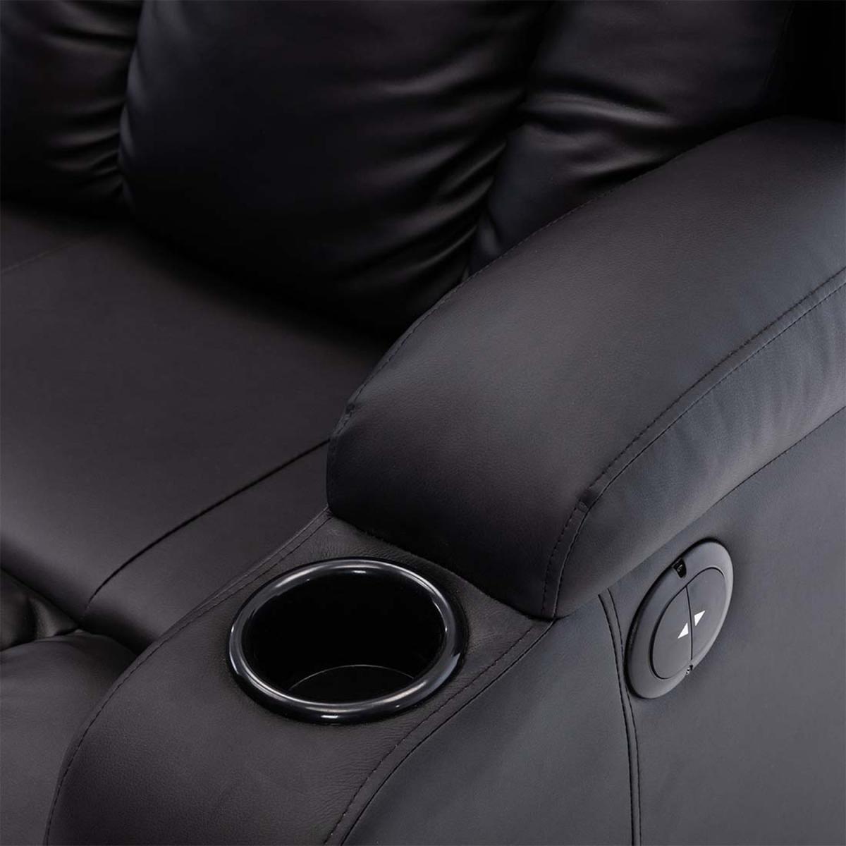 The Caesar Electric Recliner Sofa is the ultimate luxury statement. Part of our Premier sofa collection, this stunning, comfy sofa is covered in smooth Bond Grade leather and has deeply padded seats, armrests and a high back. With handy drinks holders at either end, this reclining sofa is the perfect choice for family movie nights and enjoying some quality time together. Press the button on the side to recline the seats individually when you want a quick snooze. Available in Black or Brown, this luxury sofa is perfect for every modern living room.