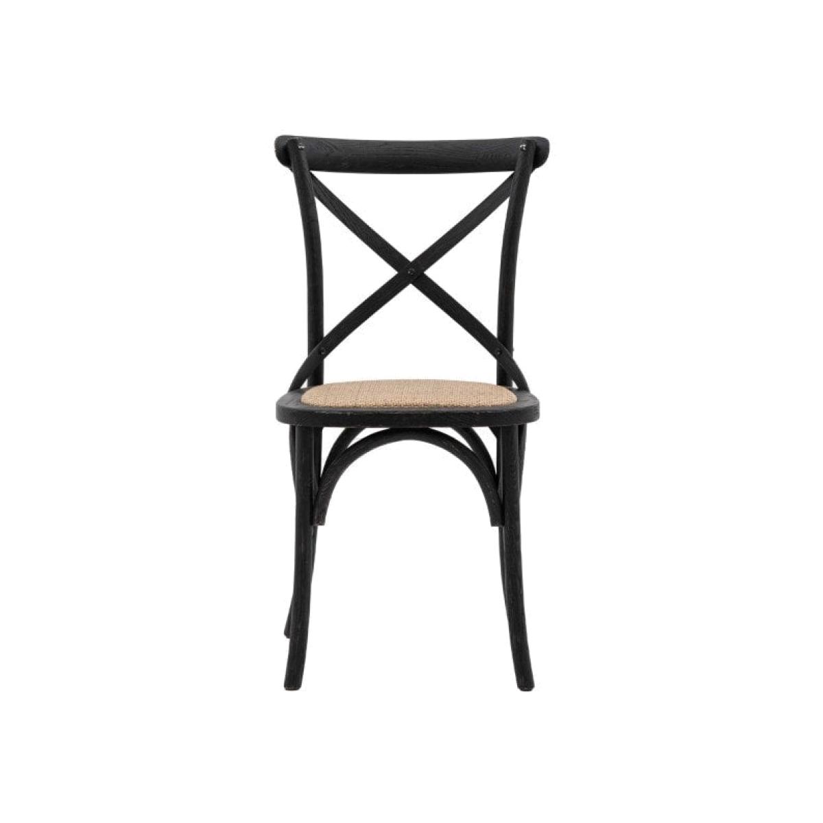 Set of 2 simple yet sophisticated cross back bistro style chairs. Bring the French cafe culture to your home with these elegant black chairs featuring solid rattan frames and hand woven rattan seats.