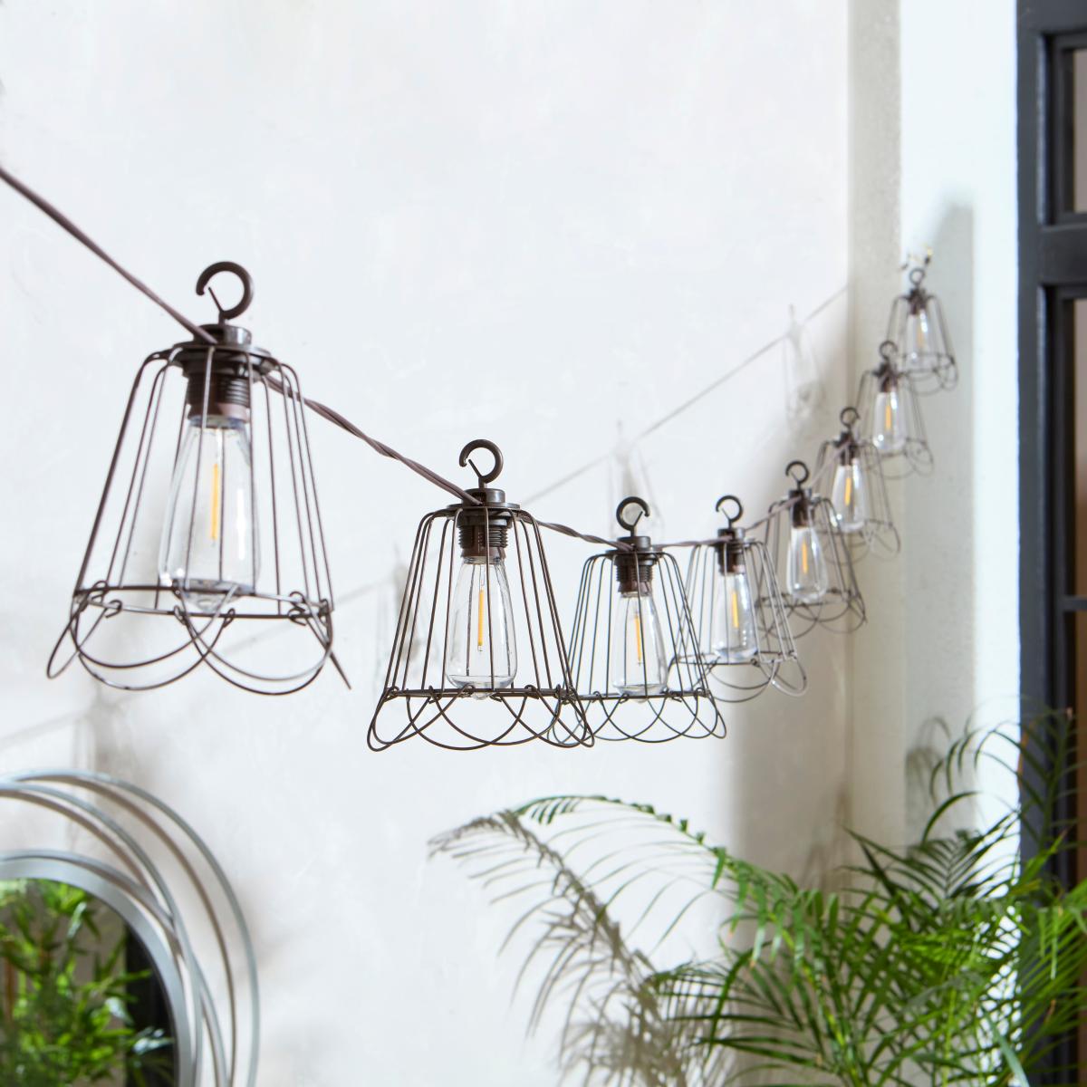 I love this string light for its industrial-meets-modern vibe, making it versatile for both contemporary and rustic outdoor settings. The metal cage design adds a touch of rugged charm that works well in garden patios, balcony terraces, or even covered outdoor dining areas. Practical styling tips include draping it along a pergola or trellis to create a cozy, inviting glow, or cluster a few strands over a seating zone for added warmth. Its solar feature means no fuss with wiring, making it perfect for effortless, eco-friendly lighting that can be effortlessly integrated into both outdoor entertaining spaces and indoor conservatories or airy kitchens that extend outside.