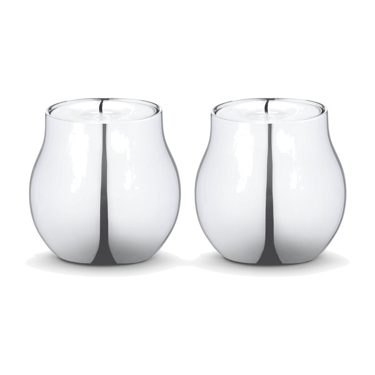 The Cafu tealight holder by Georg Jensen is a modern classic characterized by its understated elegance and soft shapes. The Cafu series is designed by the designer duo HolmbäckNordentoft and is a tribute to the Georg Jensen legacy of great designers and products. This set includes two small tealight holders that goes well together with the most products by Georg Jensen, not least the Cafu series.
