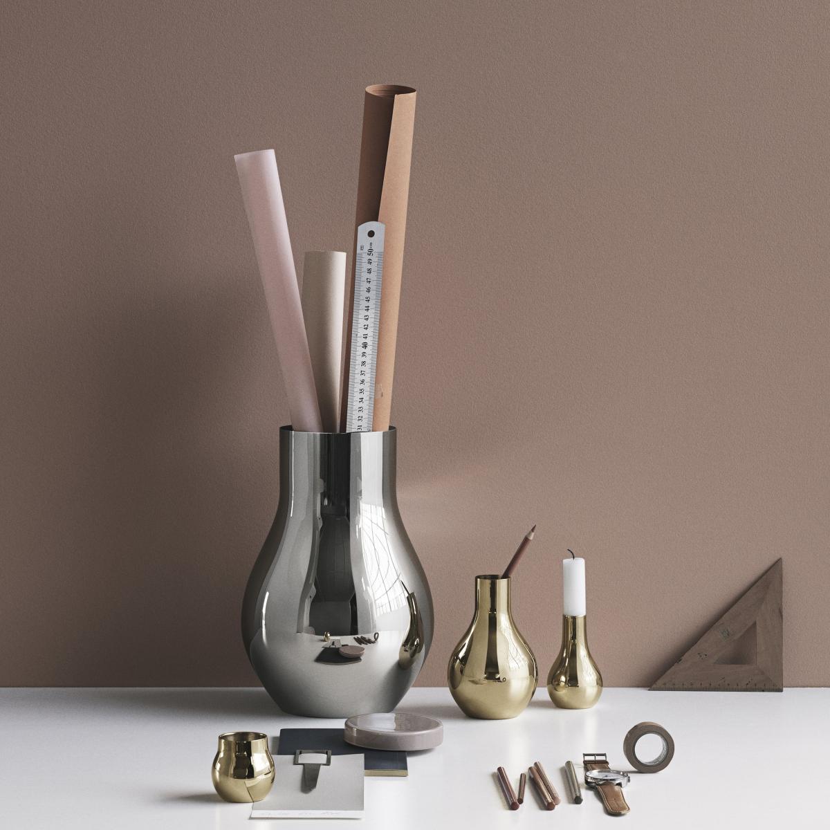 The gold plated vase Cafu by Georg Jensen has a soft, elegant shape that emphasizes the flower in a beautiful way. The Cafu series is designed by the Dansish designer team HolmbäckNordentoft and is a tribute to previous designers and the legacy of products by Georg Jensen. The vase has a modern expression but follows the same classic design idiom that Georg Jensen represents.