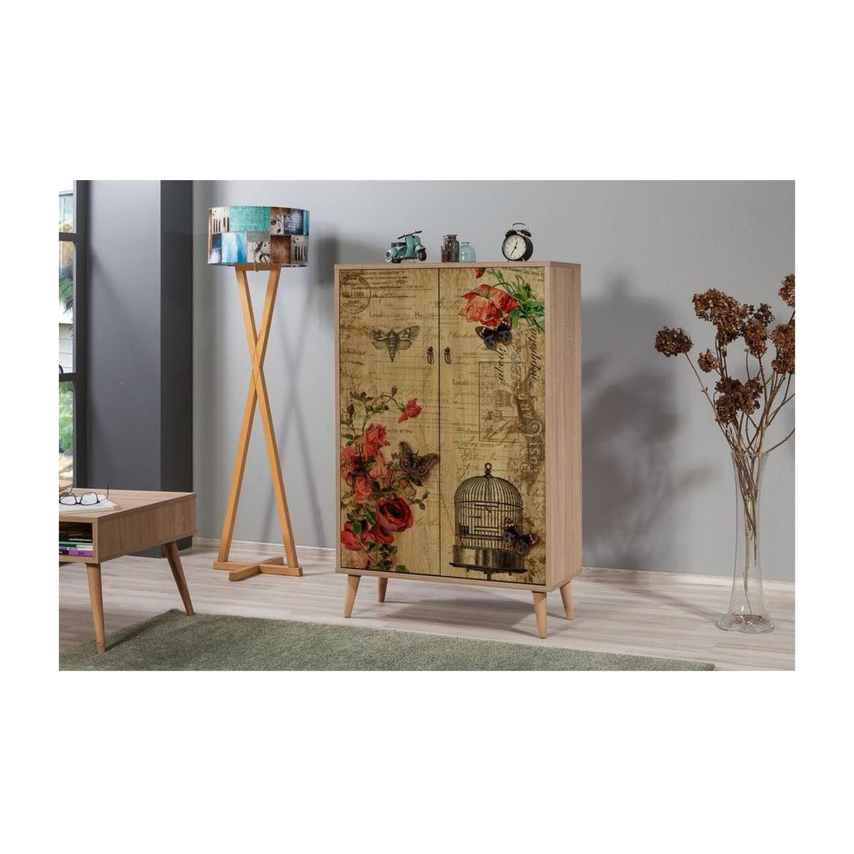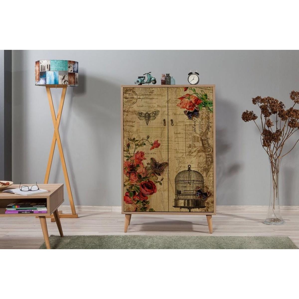 I love this sideboard for its solid Atlantic Pine construction and the cast-iron-like wooden legs, which bring a sense of sturdy craftsmanship to any space. It works particularly well in eclectic, rustic, or modern interiors where natural finishes and vintage-inspired details are key. The cabinet’s decorative front, with floral and birdcage motifs, adds a touch of visual interest without overwhelming the space. For styling, consider using it to display curated accessories or alongside contrasting textures like metal or glass for a balanced look. Its versatile size makes it ideal for hallways, dining rooms, or living areas, providing practical storage while adding a touch of character to your interior.