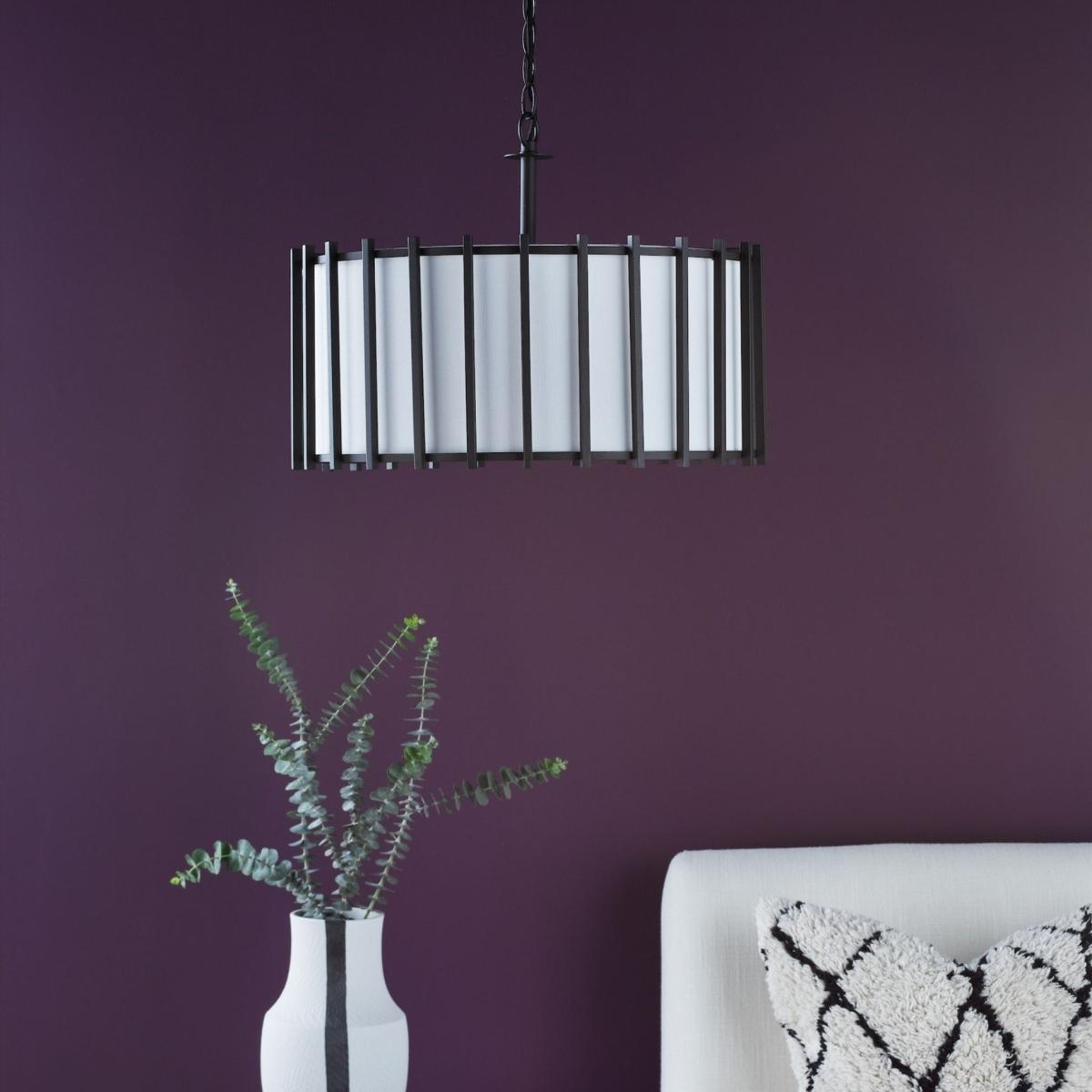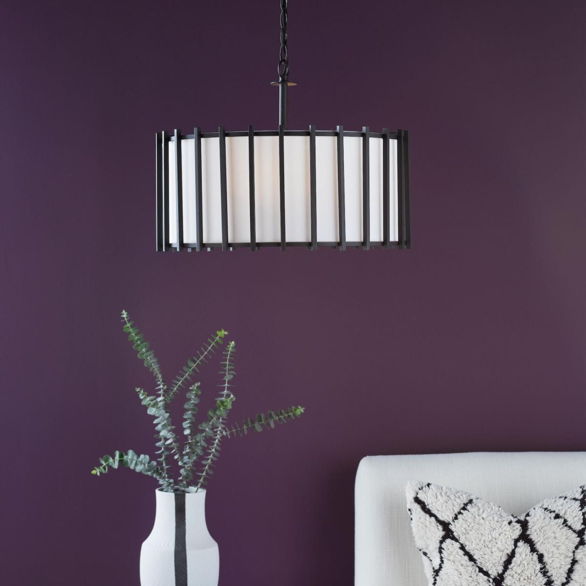 Cagliari 4-light pendant ceiling light, featuring an ivory linen drum shade within a matte black caged frame. Add a touch of modern elegance to your home with the Cagliari 4-light pendant. This stylish piece features an ivory linen shade encased within a sleek matte black caged frame, creating a striking contrast and contemporary appeal. The geometric cage design adds depth and sophistication, while the soft glow of the four lights enhances any room with warm, inviting illumination. Perfect for dining rooms, living spaces or entryways, the Cagliari pendant ceiling light combines practicality with a refined aesthetic. Its bold design and neutral tones make it a versatile centrepiece that complements both modern and industrial-inspired interiors. Cagliari 4-light pendant ceiling light, featuring an ivory linen drum shade within a matte black caged frame. Add a touch of modern elegance to your home with the Cagliari 4-light pendant. This stylish piece features an ivory linen shade encased within a sleek matte black caged frame, creating a striking contrast and contemporary appeal. The geometric cage design adds depth and sophistication, while the soft glow of the four lights enhances any room with warm, inviting illumination. Perfect for dining rooms, living spaces or entryways, the Cagliari pendant ceiling light combines practicality with a refined aesthetic. Its bold design and neutral tones make it a versatile centrepiece that complements both modern and industrial-inspired interiors.