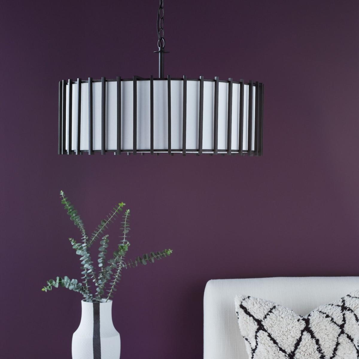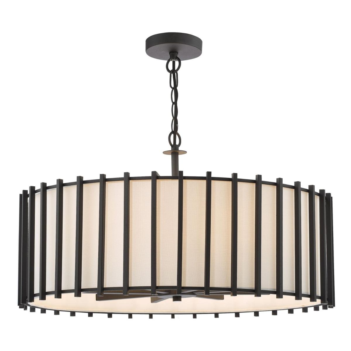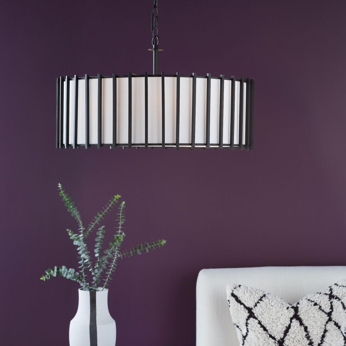 Cagliari 8-light pendant ceiling light, featuring an ivory linen drum shade within a matte black caged frame. Add a touch of modern elegance to your home with the Cagliari 4-light pendant. This stylish piece features an ivory linen shade encased within a sleek matte black caged frame, creating a striking contrast and contemporary appeal. The geometric cage design adds depth and sophistication, while the soft glow of the eight lights enhances any room with warm, inviting illumination. Perfect for dining rooms, living spaces or entryways, the Cagliari pendant ceiling light combines practicality with a refined aesthetic. Its bold design and neutral tones make it a versatile centrepiece that complements both modern and industrial-inspired interiors. Cagliari 8-light pendant ceiling light, featuring an ivory linen drum shade within a matte black caged frame. Add a touch of modern elegance to your home with the Cagliari 4-light pendant. This stylish piece features an ivory linen shade encased within a sleek matte black caged frame, creating a striking contrast and contemporary appeal. The geometric cage design adds depth and sophistication, while the soft glow of the eight lights enhances any room with warm, inviting illumination. Perfect for dining rooms, living spaces or entryways, the Cagliari pendant ceiling light combines practicality with a refined aesthetic. Its bold design and neutral tones make it a versatile centrepiece that complements both modern and industrial-inspired interiors.