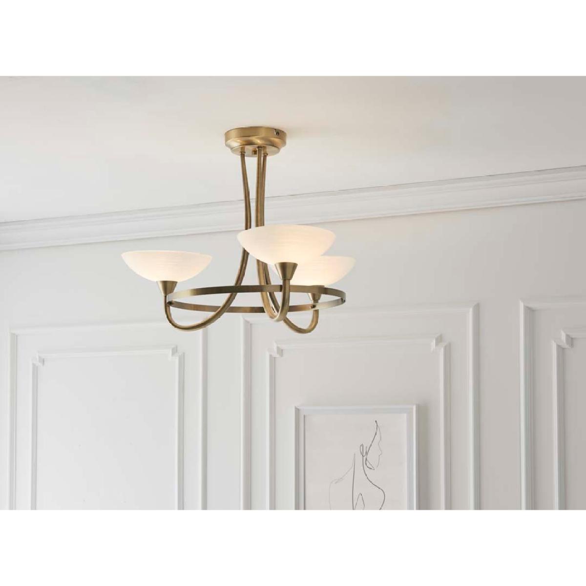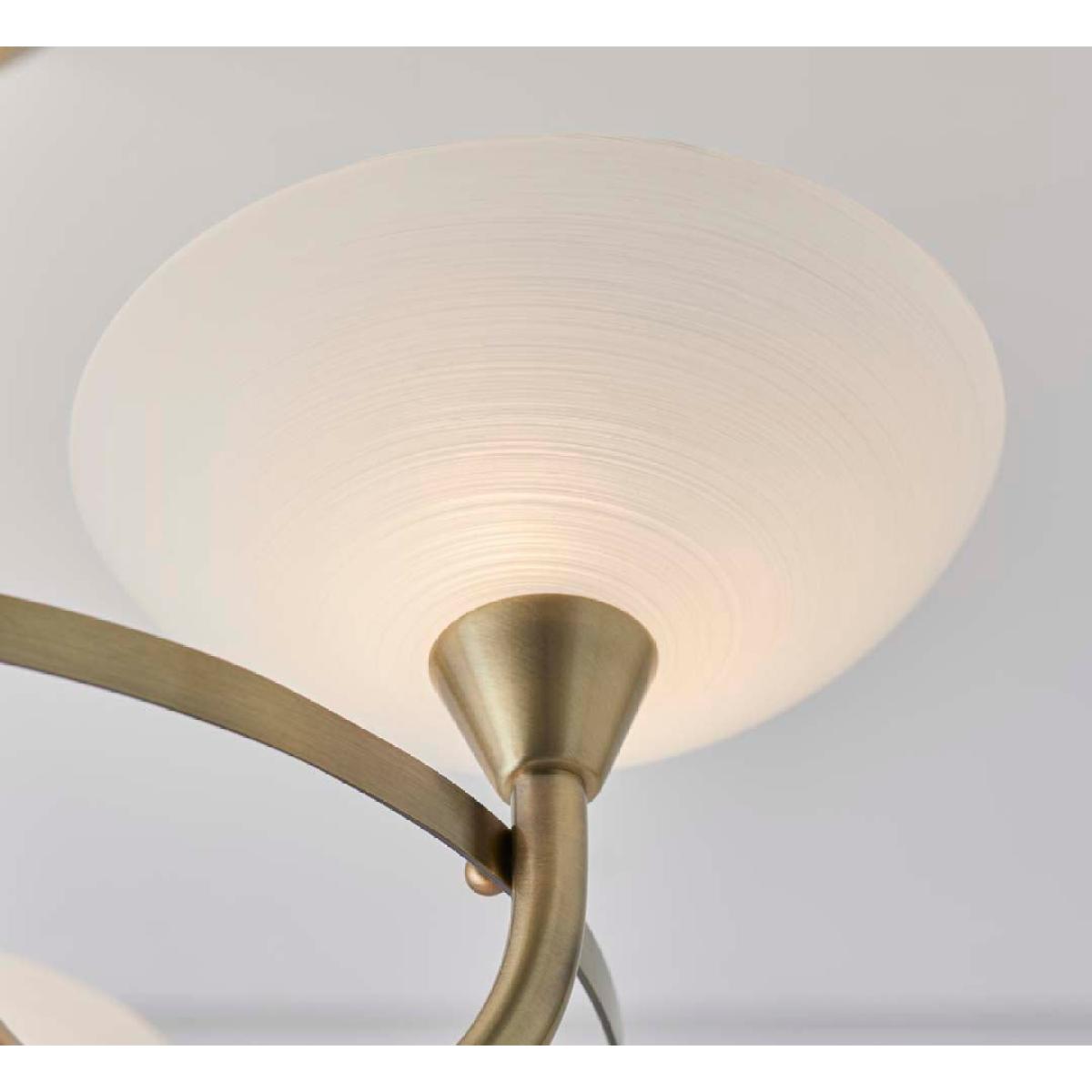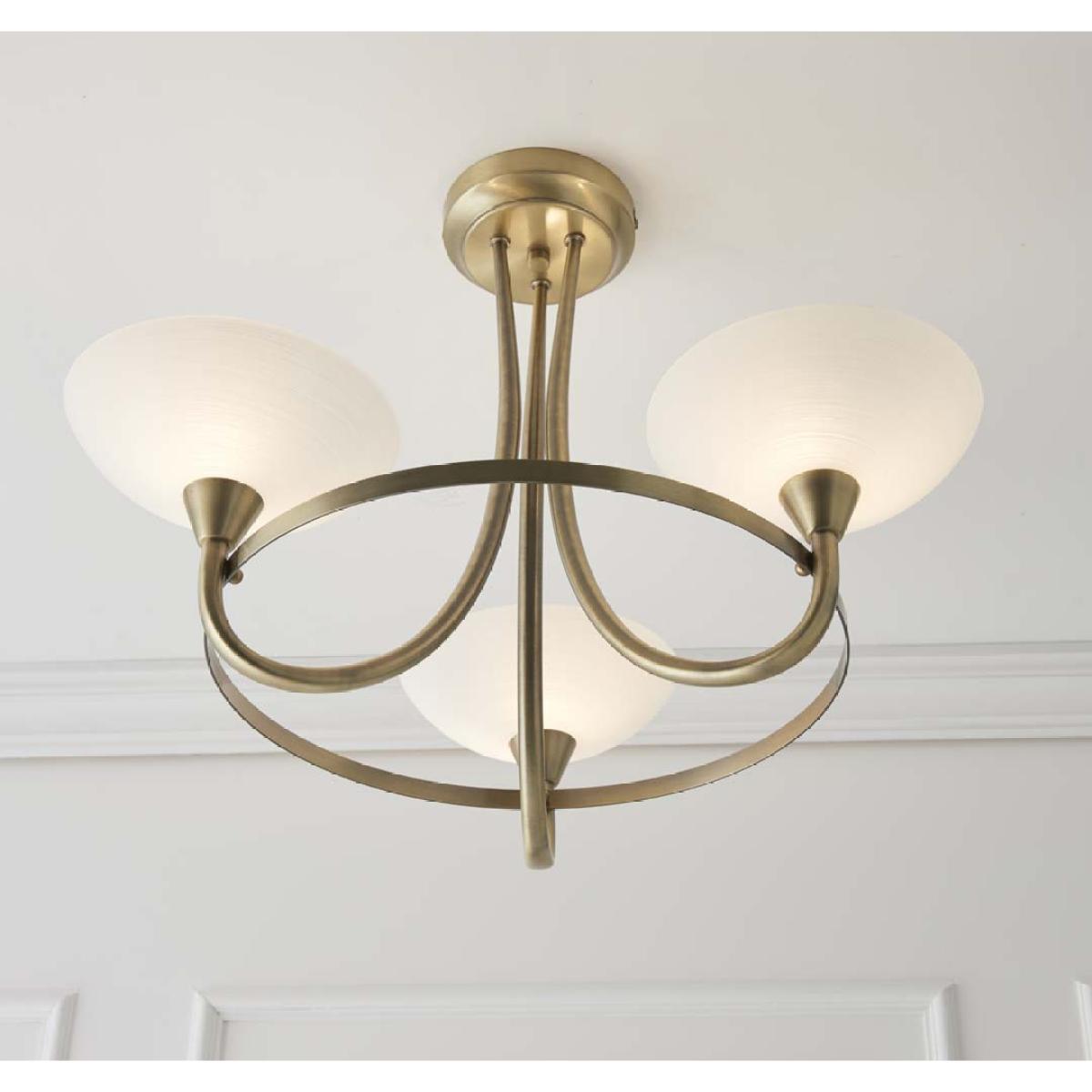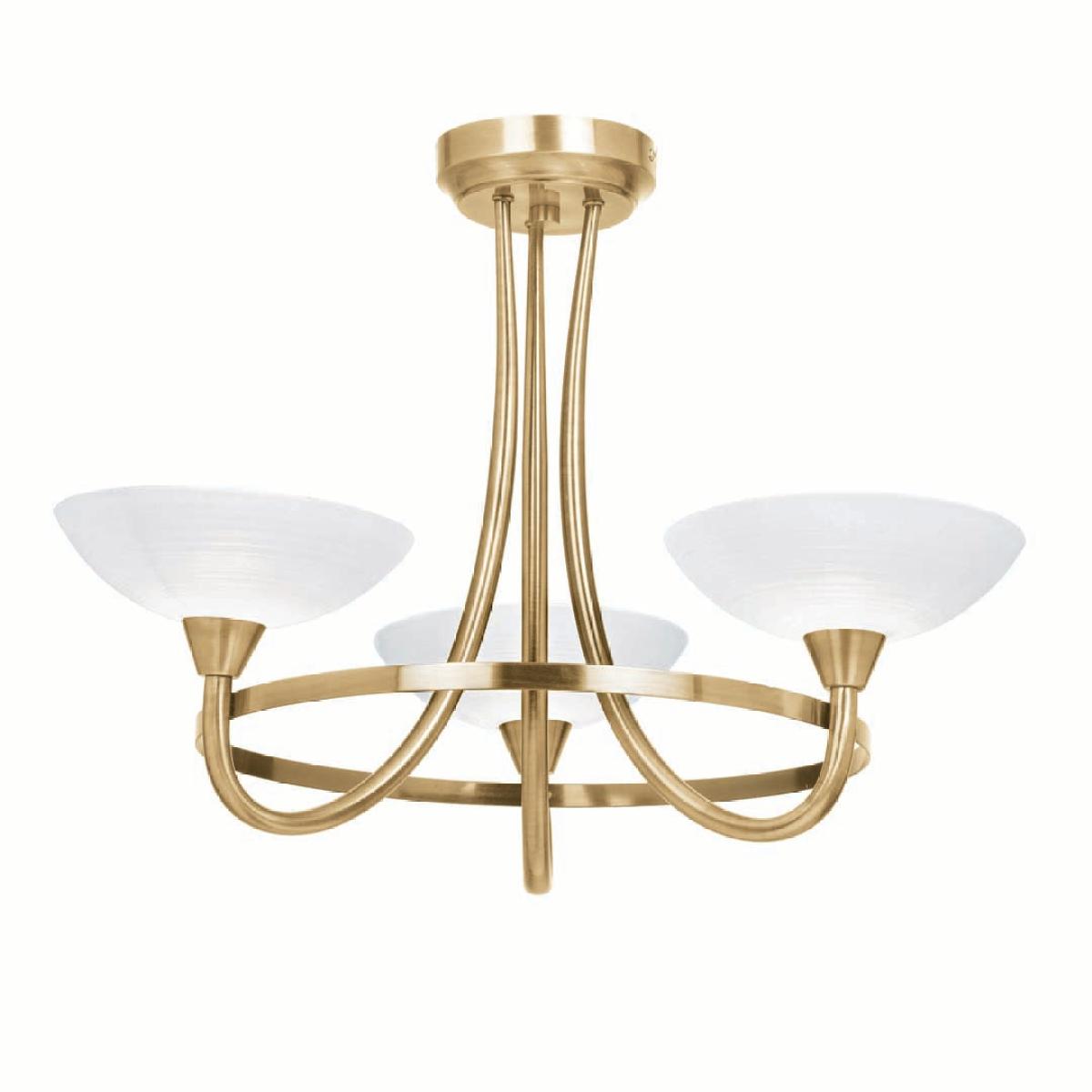 Modern semi flush ceiling light boasting an antique brass finish. The Cagney 3 Light Ceiling Light is a chic fitting from Endon. The styling of this semi flush piece makes it suitable for homes boasting both traditional or contemporary home decor. Finished in antique brass throughout, the curved frame features three arms which support delicate opal glass uplighter shades. We recommend using our 3w LED G9 capsule bulbs which are a great replacement for standard halogen bulbs. Modern semi flush ceiling light boasting an antique brass finish. The Cagney 3 Light Ceiling Light is a chic fitting from Endon. The styling of this semi flush piece makes it suitable for homes boasting both traditional or contemporary home decor. Finished in antique brass throughout, the curved frame features three arms which support delicate opal glass uplighter shades. We recommend using our 3w LED G9 capsule bulbs which are a great replacement for standard halogen bulbs.