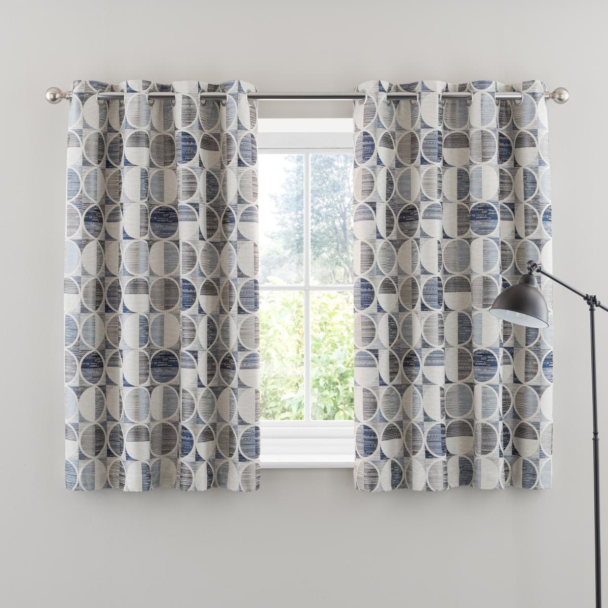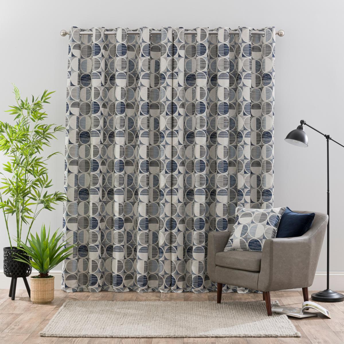 Cai Circle Jacquard Eyelet Curtains Navy (Blue)