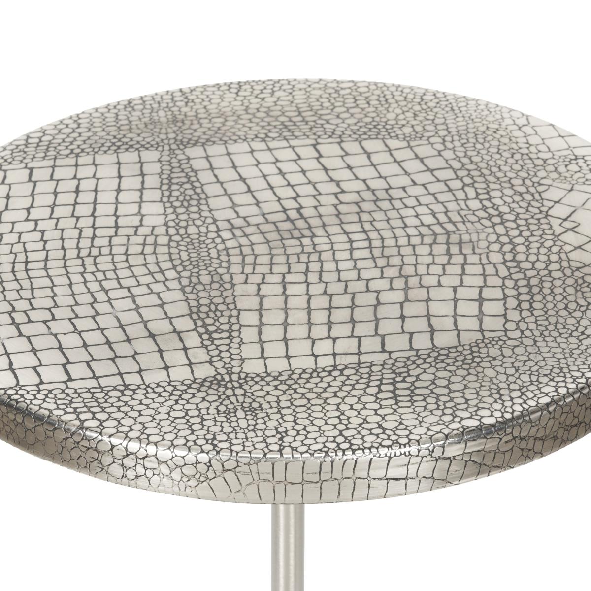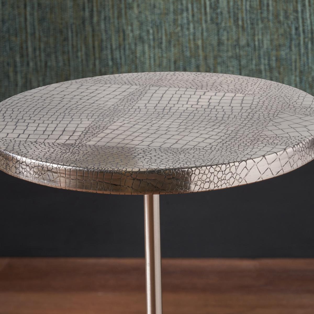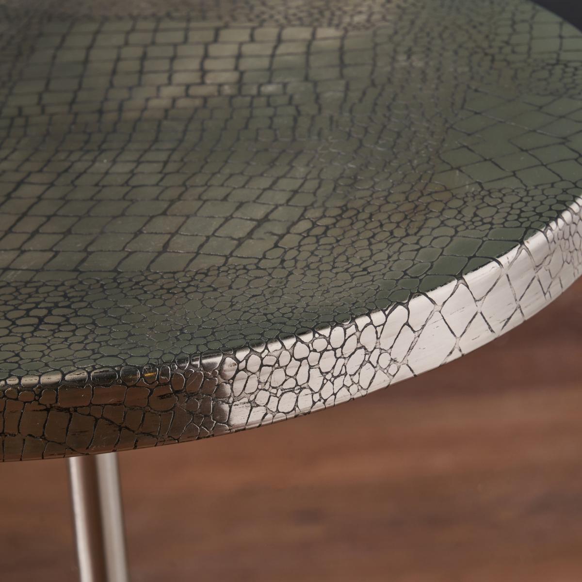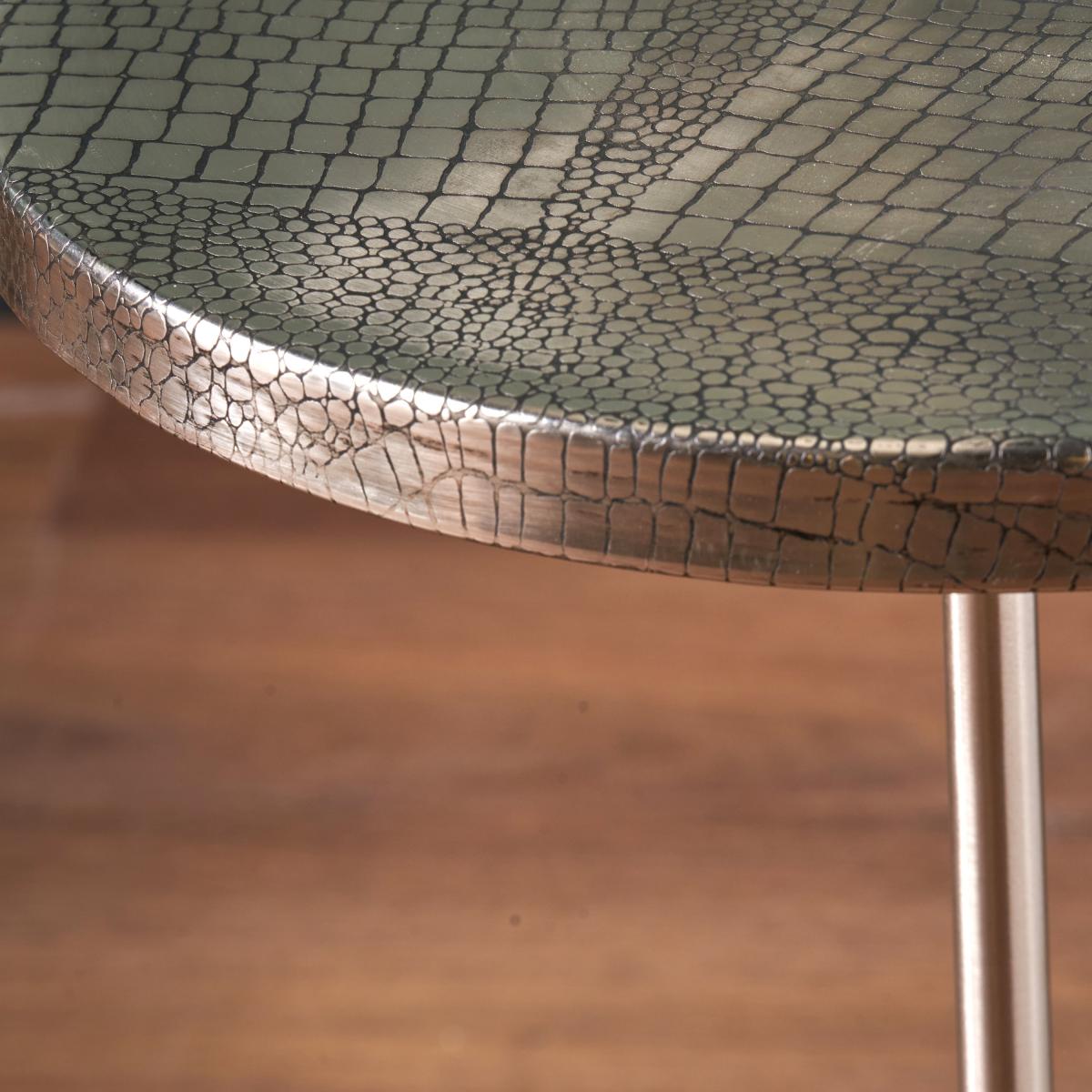 This side table, with its striking croc print metal top, offers a modern edge with a touch of luxe industrial character. I love how it seamlessly fits into contemporary or eclectic interiors, adding visual interest without overwhelming the space. It works well in living rooms, bedrooms, or even as a statement piece in a hallway. For styling, consider pairing it with sleek accessories or a small statement lamp, and balance its bold texture with softer textiles nearby. Its compact size makes it highly versatile-perfect for placing next to a sofa or armchair, or even as a bedside table. The metal finish also lends itself well to pairing with other metallic accents for a cohesive and stylish look.