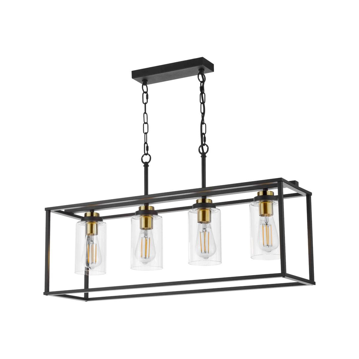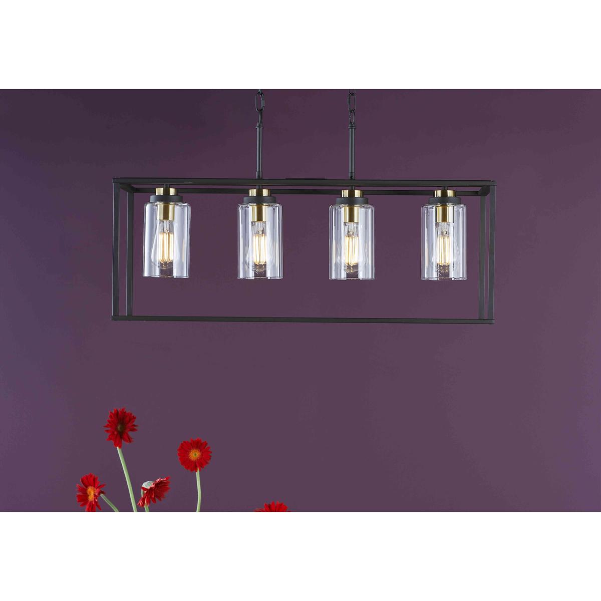 This striking bar pendant light is ideal for illuminating kitchen islands. Pair it with some Edison-style bulbs for extra vintage charm. Why you'll love it On-trend industrial design is an interior winner. Blend of matt black metal work with satin brass accents. Height adjustable so finding that perfect fit is easy. What you need to know Made from steel and glass. Height is adjustable at the point of installation (55-190 cm). Takes 4 x ES GLS bulbs, max. 40. W. Dust with a soft, lint-free cloth. Dimmable when paired with suitable bulbs. Dimensions Height: 55-190 cm (21-74 inches) Width: 80 cm (32 inches) Depth: 23 cm (10 inches) Weight: 5.9 kg