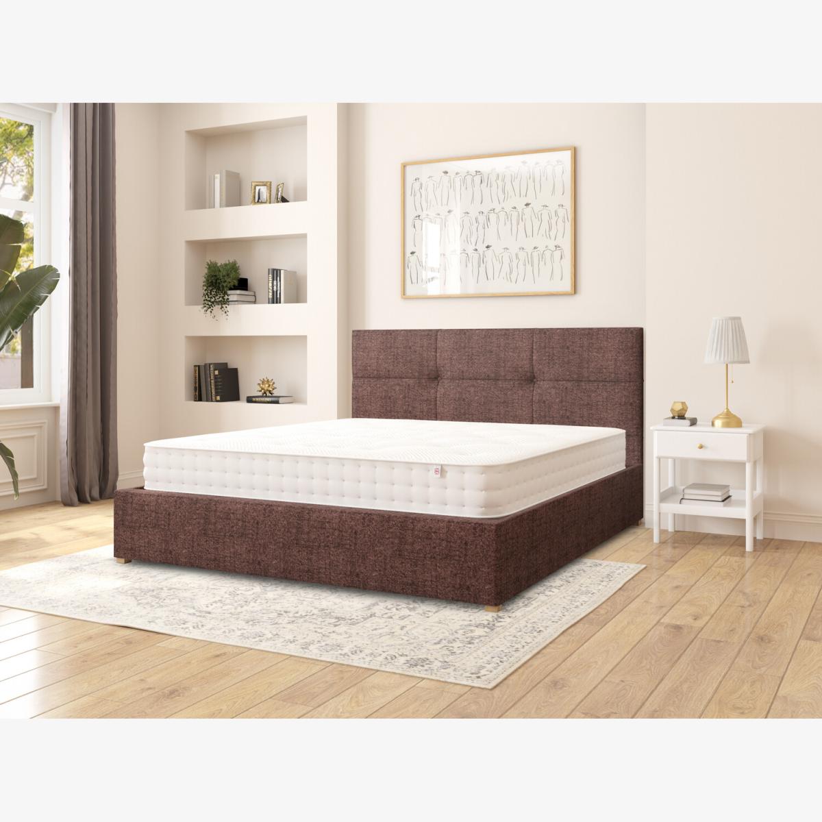 Each headboard is constructed with deep foam padding perfect for sitting up in bed and reading. We believe quality has no short cuts, meaning all our designs are hand upholstered by our skilled craftsmen. Our UK ottoman design features chunky upholstered panels, which means it is built to last. Quality sprung slats improve comfort and mattress lifespan. The easy lift ottoman mechanism is supported with quality gas pistons, enabling the storage to be accessed with minimal effort. Once the ottoman is elevated it will hold position, allowing hands free access to storage. Our ottomans offer the perfect storage solutions for rooms with no or limited space with a spacious storage area of approximately 28cm. The fabric base attaches to the underside of the bed, protecting your stored items. Each ottoman is finished with hardwood feet which have been hand turned and varnished.