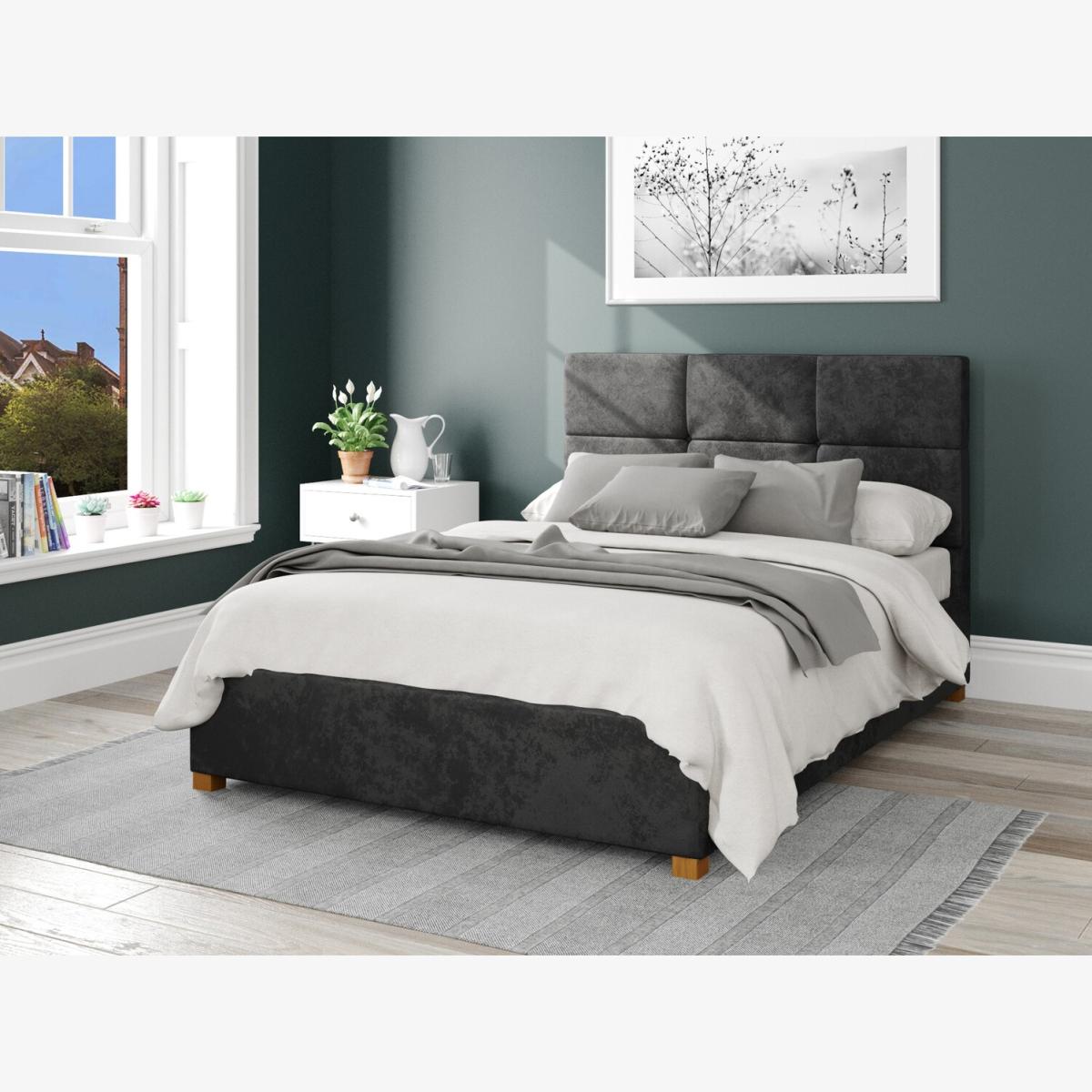 Stylish ottoman bed manufactured in the UK and upholstered by hand in a beautiful, Mirazzi Velvet fabric. The Caine Fabric Ottoman Bed boasts a deep padded headboard with a sleek, modern design and stylish solid hardwood feet. It offers substantial storage, accessible through a gas lift mechanism that holds the bed open for hands-free use. The storage area includes a dust sheet but is not boarded. Quality spring slats enhance comfort and support, and while assembly of the flat-packed bed typically requires 1-2 hours and is more straightforward with two people. Additionally, the bed meets UK safety standards and has passed non-mandatory structural testing for added assurance.