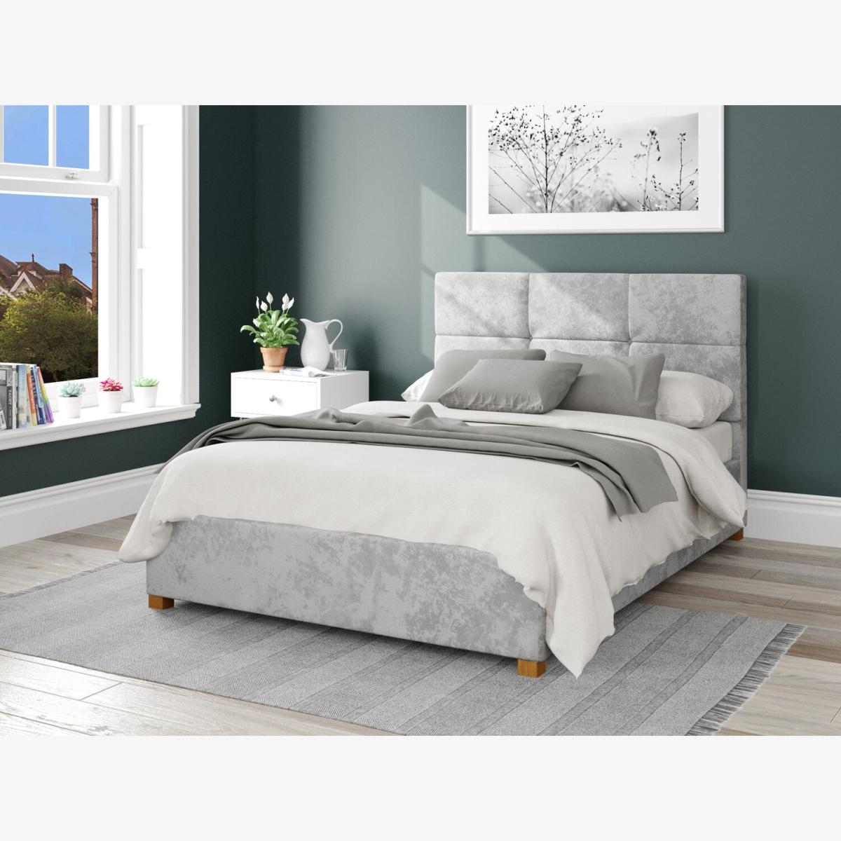 Stylish ottoman bed manufactured in the UK and upholstered by hand in a beautiful, Mirazzi Velvet fabric. The Caine Fabric Ottoman Bed boasts a deep padded headboard with a sleek, modern design and stylish solid hardwood feet. It offers substantial storage, accessible through a gas lift mechanism that holds the bed open for hands-free use. The storage area includes a dust sheet but is not boarded. Quality spring slats enhance comfort and support, and while assembly of the flat-packed bed typically requires 1-2 hours and is more straightforward with two people. Additionally, the bed meets UK safety standards and has passed non-mandatory structural testing for added assurance.