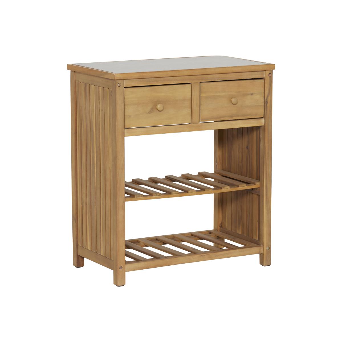 I’m a fan of the Calabria kitchen unit for its clean lines and naturally warm finish - it slots straight into Scandi-inspired, coastal or modern farmhouse schemes. The two drawers are perfect for stashing tea towels or utensils, while the slatted shelves make an ideal spot for wicker baskets, bottles of olive oil or a neat row of cookbooks. Top it with a small plant or a monochrome chopping board to keep the look crisp, and you’ve got both extra prep space and an organised display that never feels cluttered.