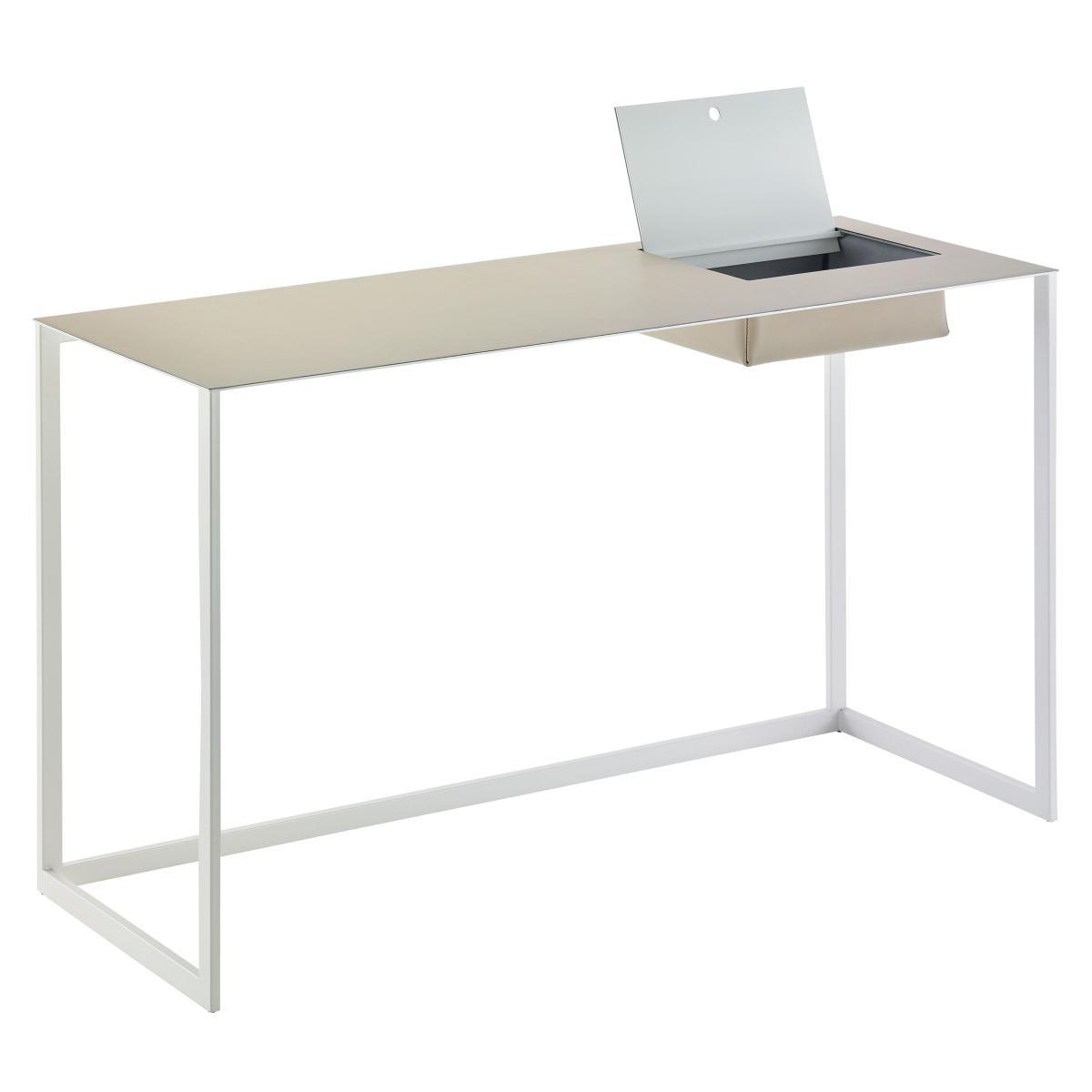 Calamo Desk - Leather / L 130 cm by Zanotta White/Grey
