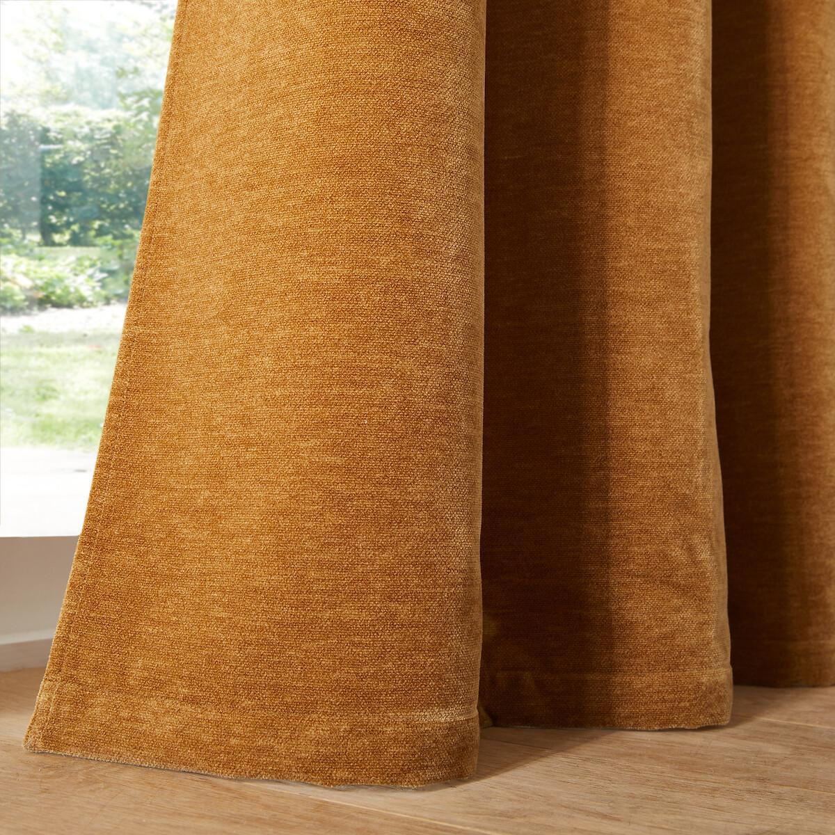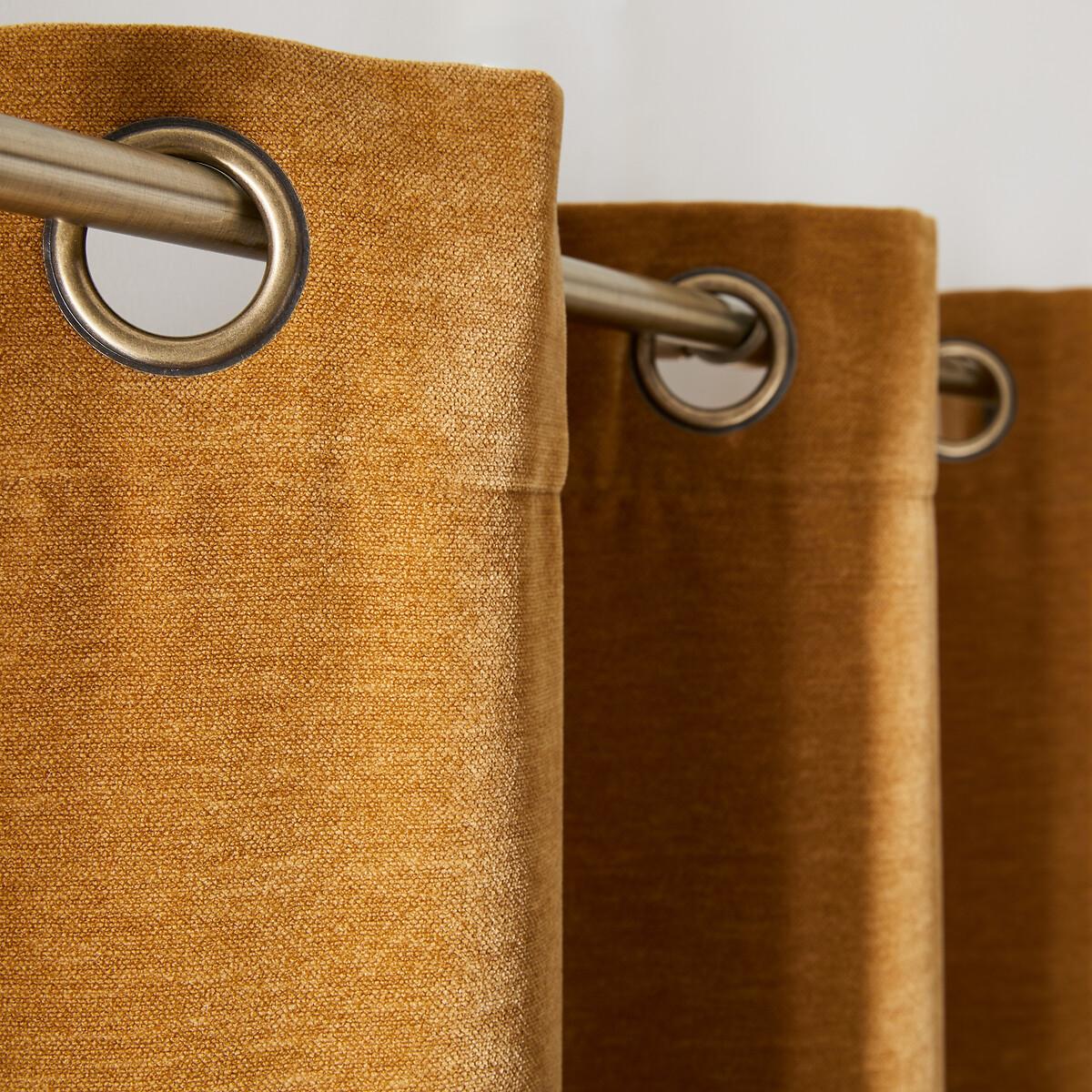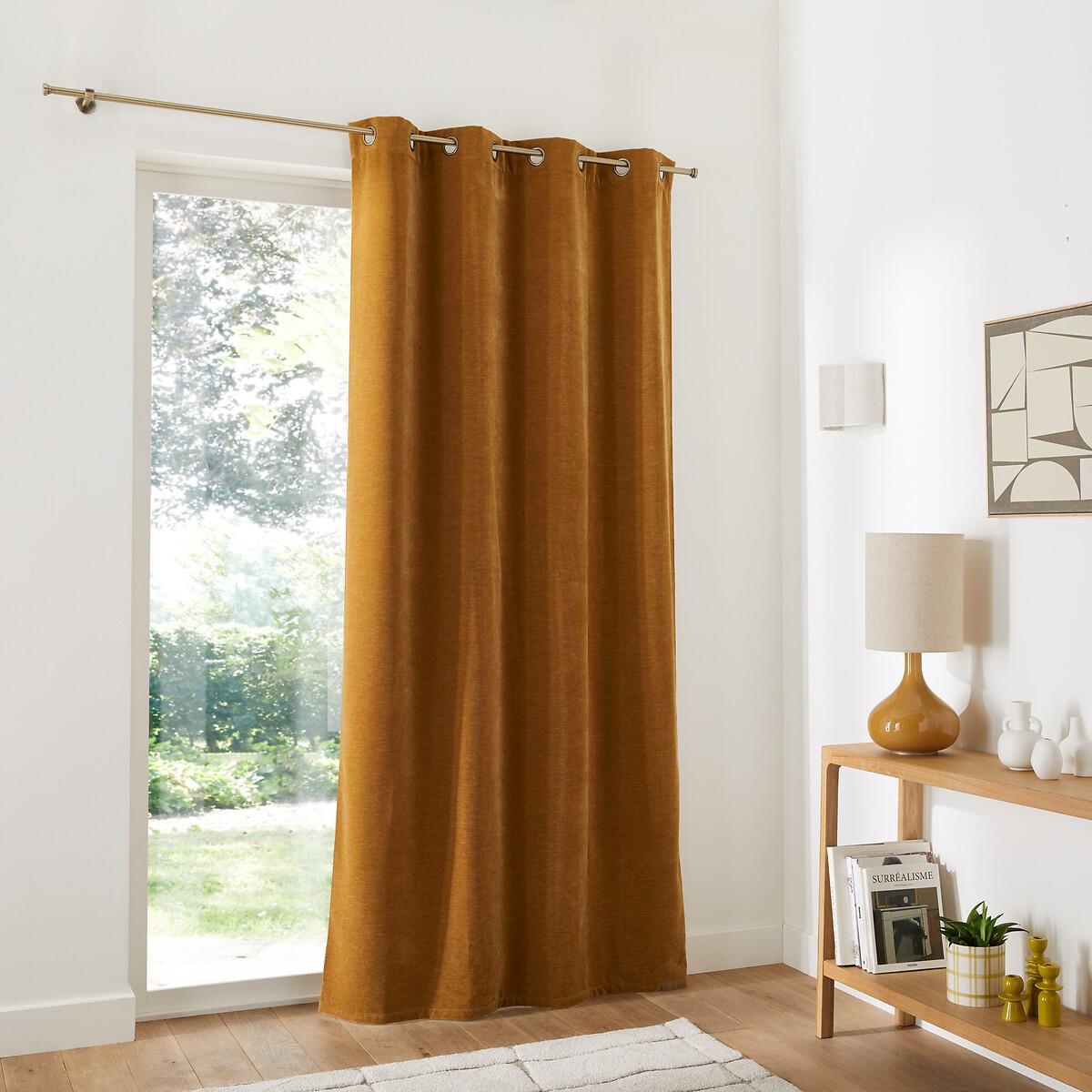 Add some style to your windows with Calda eyelet curtains. In the bedroom, living room or dining room, their chenille texture and velour look create a warm, elegant ambience. Available in a range of colours to match your rooms. The ideal decorative ally. The eyelets guarantee nice regular waves and ensure the fabric falls beautifully. They slide perfectly on the rod, making it easy to open and close the curtain. Product Details • Screening • 100% polyester chenille, 400g/m2 • Brushed velour look • Top finish : eyelets • Internal diameter of eyelets : 4cm/1.5" • Finished bottom : Plain hemmed edging. To help you in the choice and maintenance of your curtains, do not hesitate to consult our guide by typing "Curtain Buying Guide" in our search engine on the site. Care Advice • Machine washable at 40°C • Maximum shrinkage after washing : 3% approx. Fabrics made from natural fibres may shrink in the first wash. Always wash your curtains before making any alterations. • Do not tumble dry • If you don't need to iron them (linen curtains, Voile Panel...), let the curtains air dry by hanging them immediately after washing, making sure to spread them out to their full width. • If you want to iron your curtains, we recommend using a low-temperature steam iron or a steamer. Dimensions • Drop 250 x W135cm • Drop 300 x W135cm • Drop 350 x W135cm • OEKO-TEX® Standard 100. Standard 100 certification by OEKO-TEX® tests textile products for harmful substances via an independent, international label.