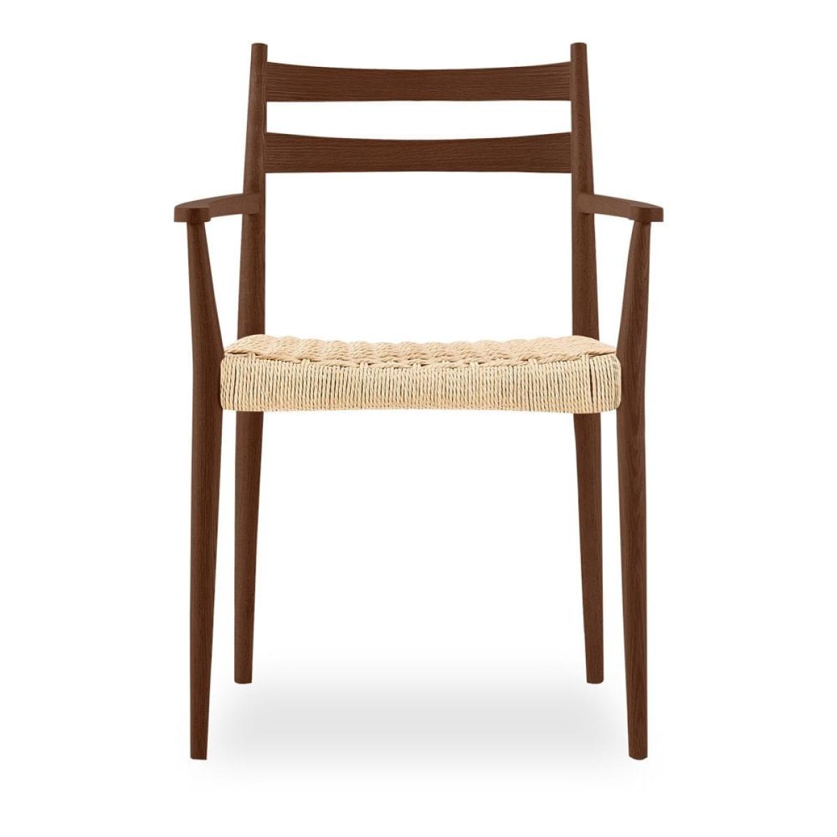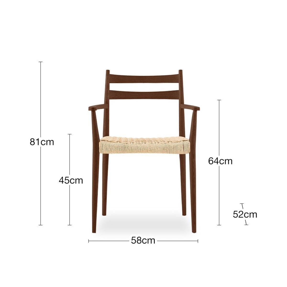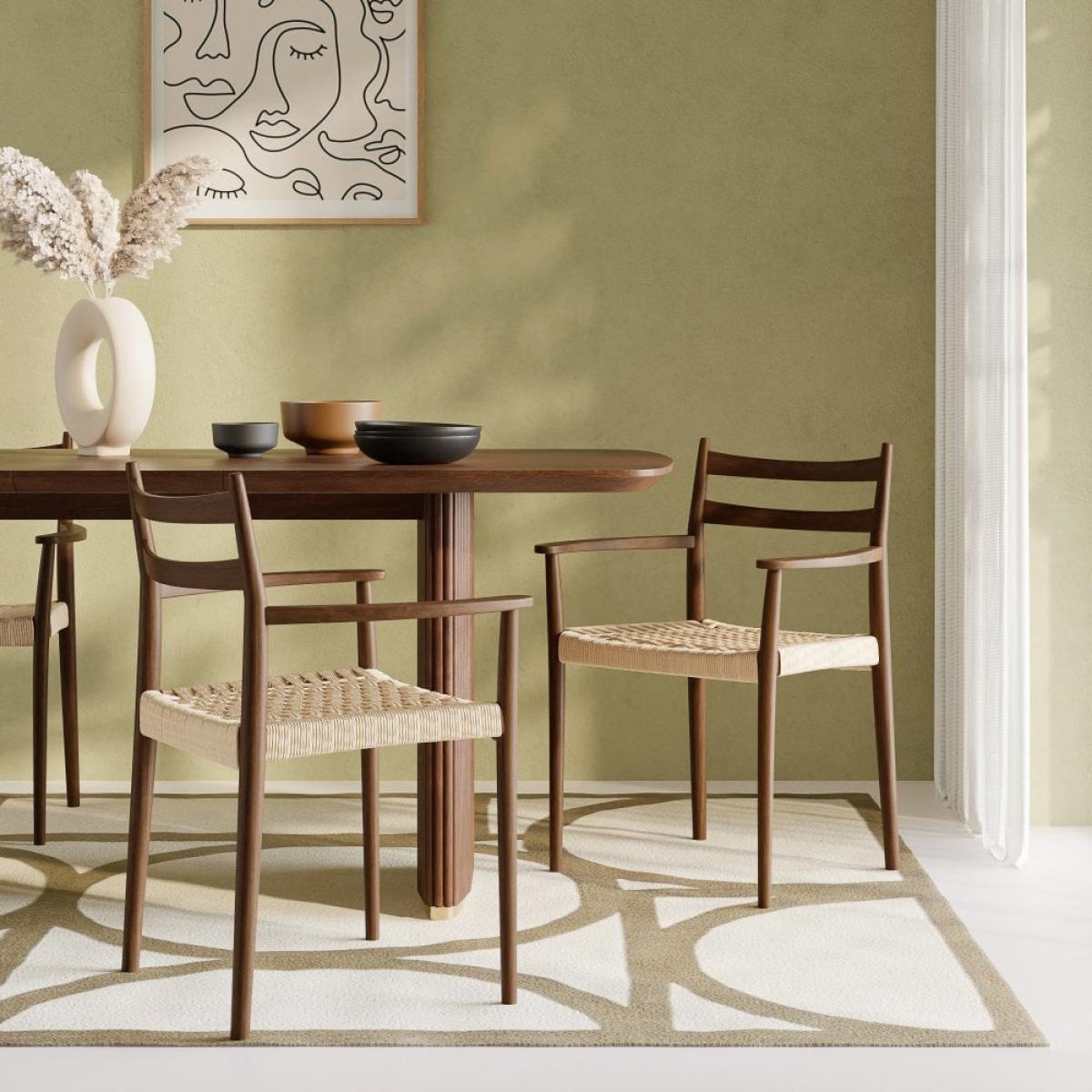I’m a fan of this carver chair for its clean lines and the tactile contrast between the warm walnut frame and the hand-woven seat. It sits comfortably in mid-century modern or Scandi-inspired schemes, but equally lifts a pared-back farmhouse kitchen. For a cohesive look, pair it with a simple oak dining table and muted textiles - think linen cushions in soft greys or muted sage. Its slender arms and open back mean it won’t overwhelm a small space, and a low-profile rug beneath helps define your dining zone.