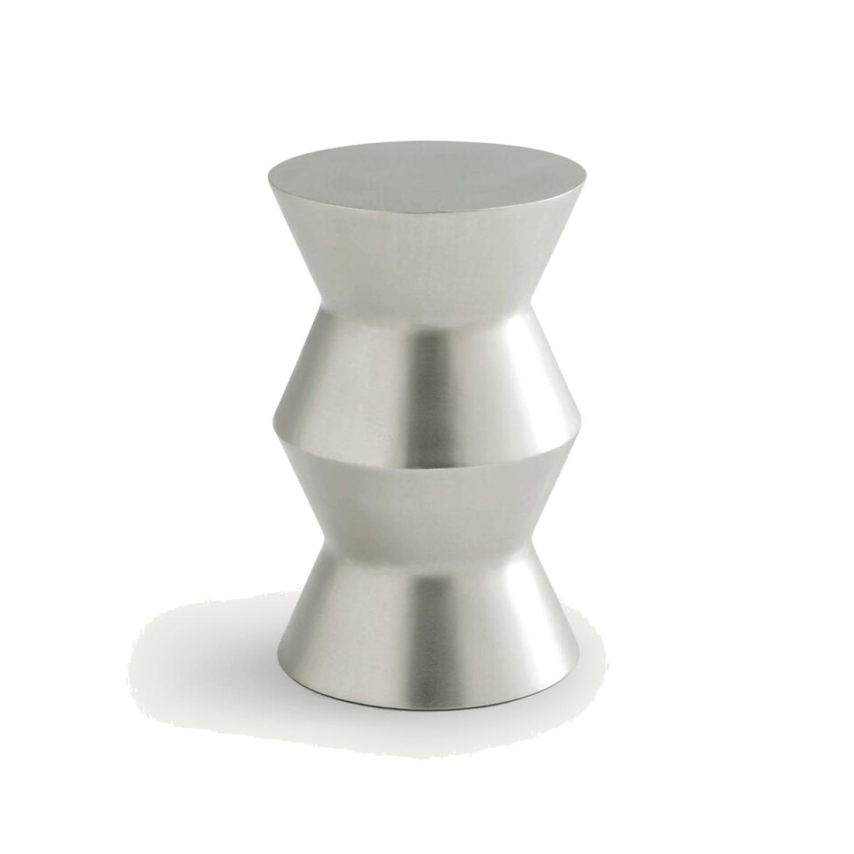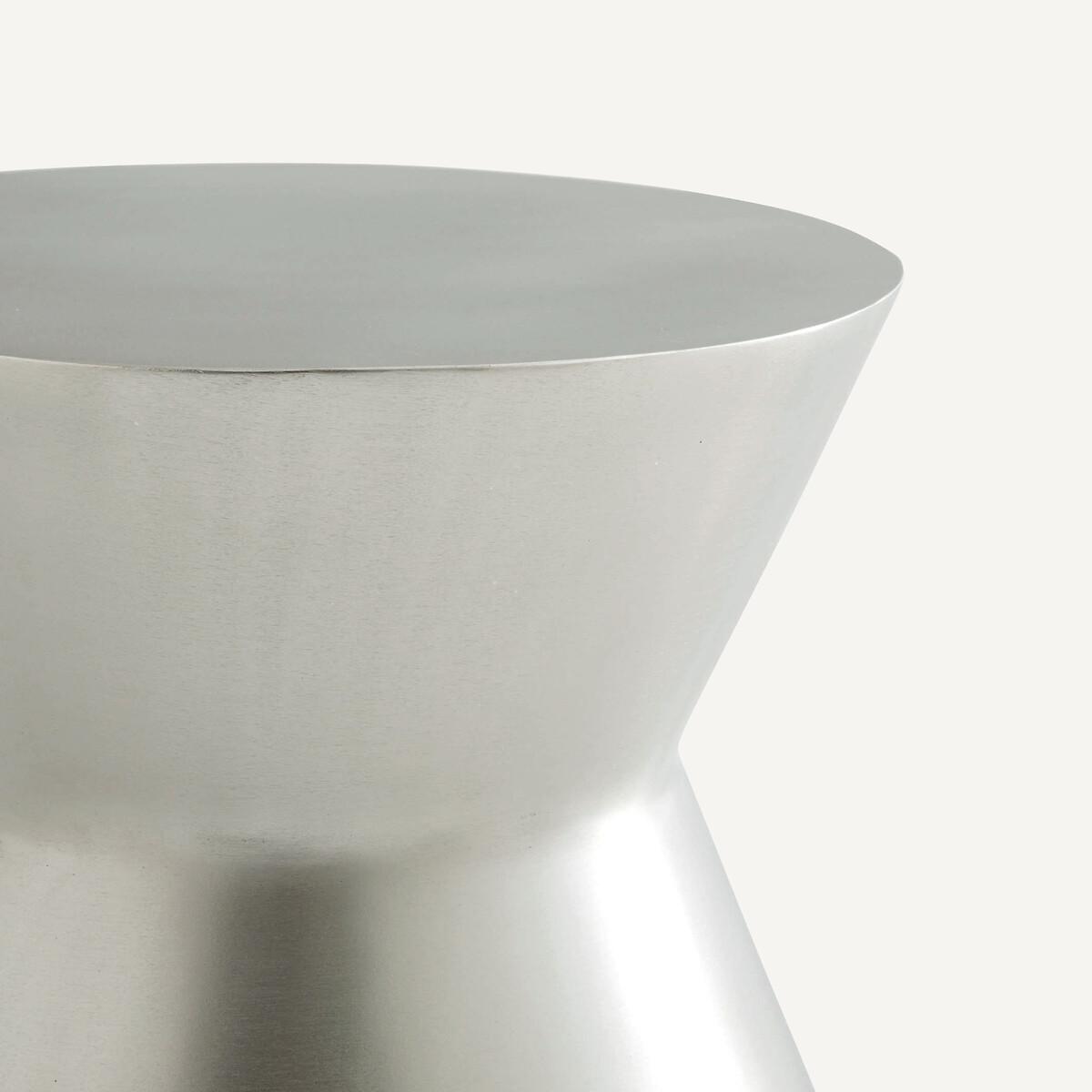 At the end of the sofa or at the bedside, we love its original sculptural shape. Use on its own or together with other side tables sold on this site. Its African-inspired design, with a worked finish, makes it an aesthetic and functional product.. An AMPM exclusive. Product Details • Cast aluminium with satin nickel finish. Dimensions • Diameter: 30cm • Height: 45cm Parcel dimensions and weight • 1 parcel • L38 x H57 x D38cm, 9kg