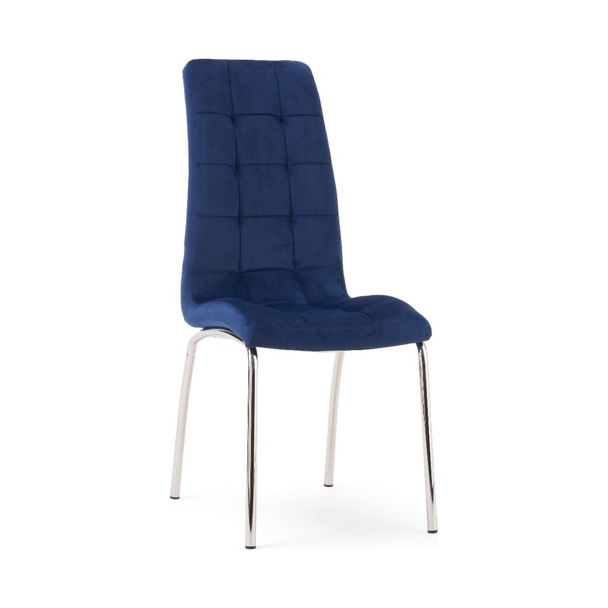 The Calgary Blue Velvet Dining Chairs add sleek modern style to your dining space. These striking chairs feature rich blue velvet with a stitched design and are complete with smooth chrome legs. Velvet and chrome chairs are stylish and modern Upholstered in rich blue velvet for a pop of colour. Padded throughout for maximum comfort Elegant square stitched design Chrome legs complete the modern look