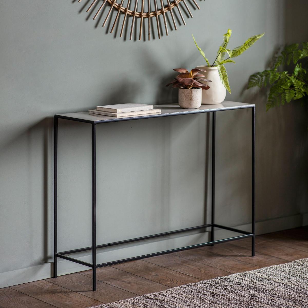 I love this light grey console table for its sleek, minimalist look that easily complements both modern and transitional interiors. Its metal frame adds a touch of industrial chic, making it versatile for entryways, hallways, or behind a sofa. Practical styling tips include layering with a decorative tray or a small collection of books and incorporating greenery or sculptural accents to add visual interest. It's perfect for creating a functional surface without visual clutter, and its neutral tone means it won't overpower your existing colour scheme.