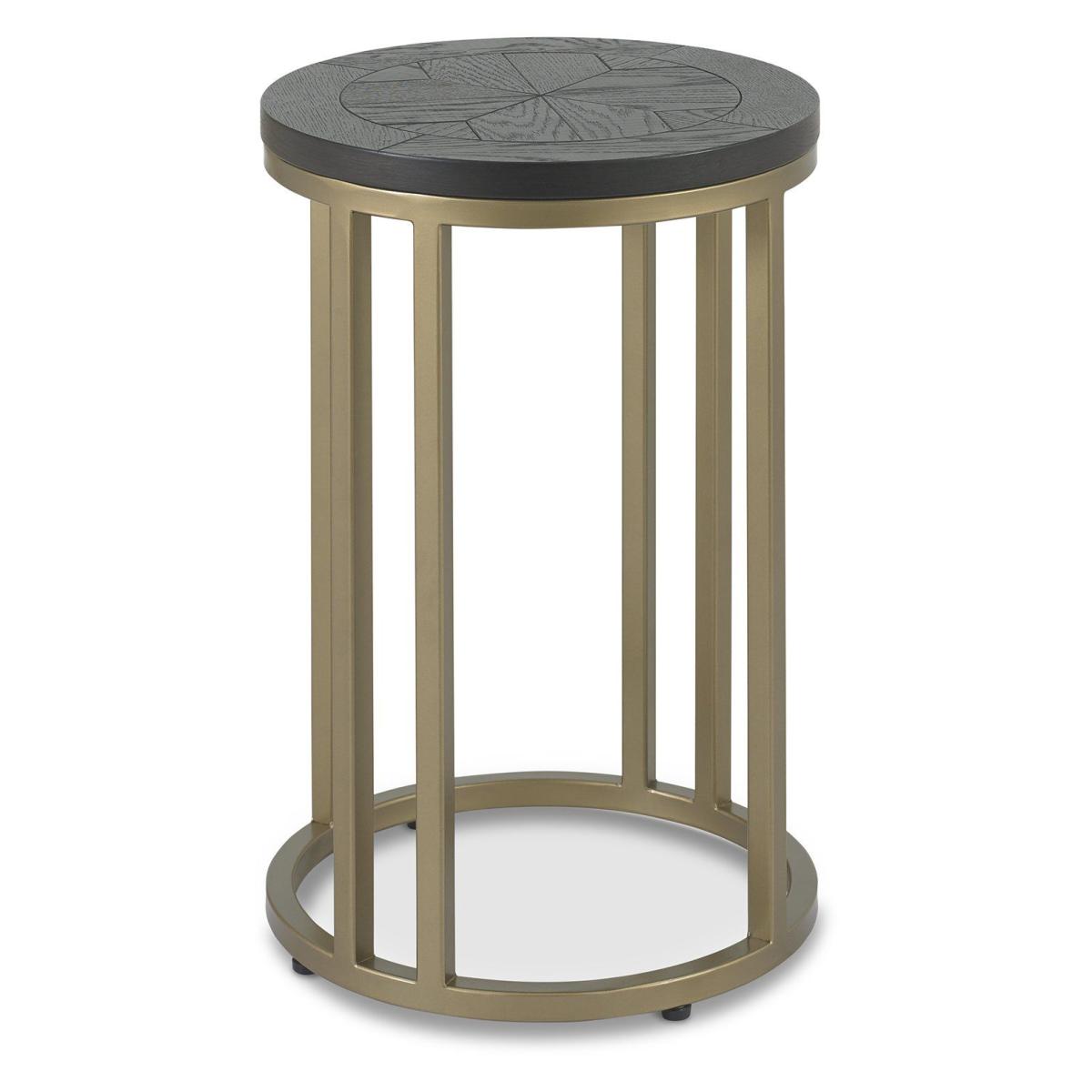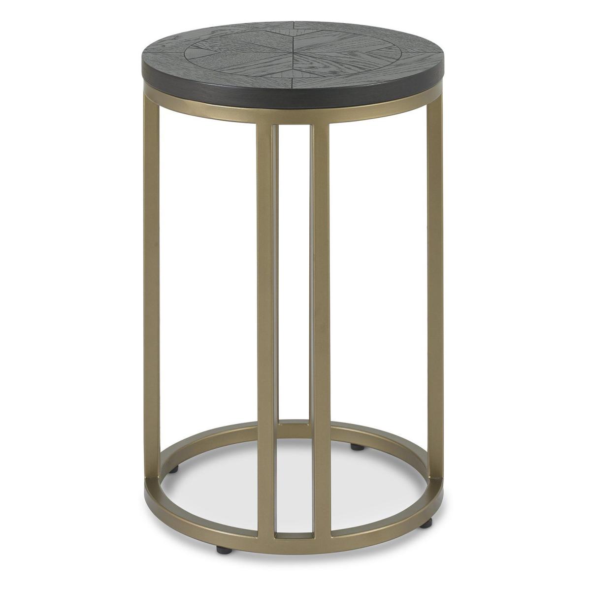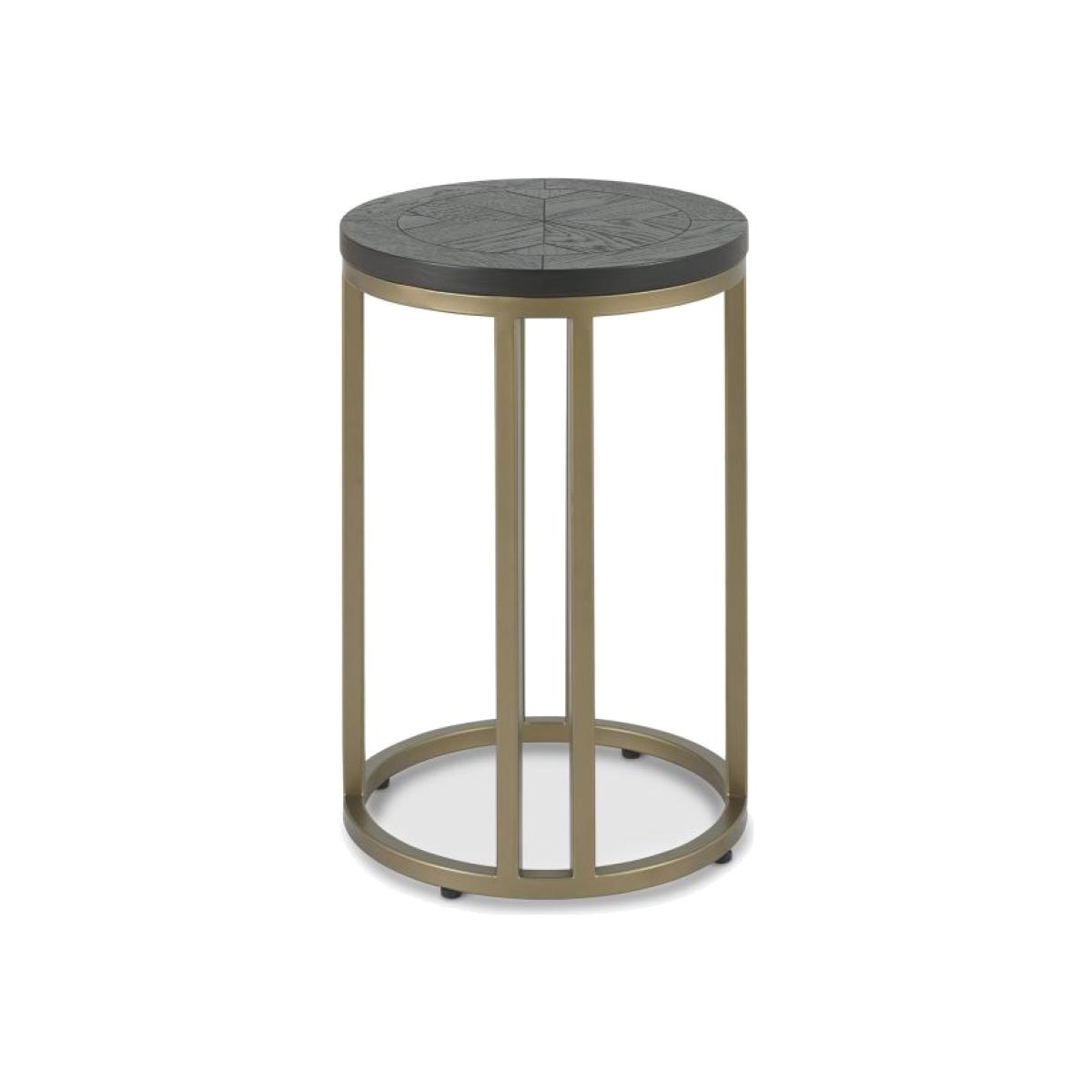 Add glamour and make a statement in your home with the Calgary Peppercorn ash occasional range. Saw cut ash marquetry tops are finished in a rich peppercorn coloured stain and married with a burnished satin brass metal base to give this range a chic and luxurious feel. Each of the hand-crafted boarded chevron patterned tops are wire brushed and distressed to give an authentic look and tactile feel, making the most of the beautiful and varied grains of ash. The radiused tops and bases combine beautifully with the linear frames to create a contemporary and slightly eclectic blend. Dimensions - D 38 x H 55.7cm Finish - Peppercorn Ash Gold Metal Frame Material - Oak  All screens vary in colour reproduction and whilst every effort has been made to display the colour as accurately as possible it is for guidance only.