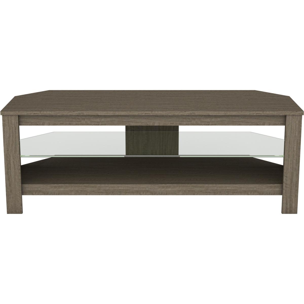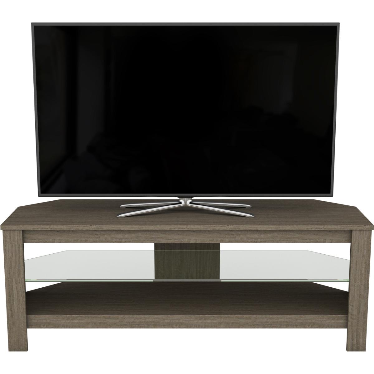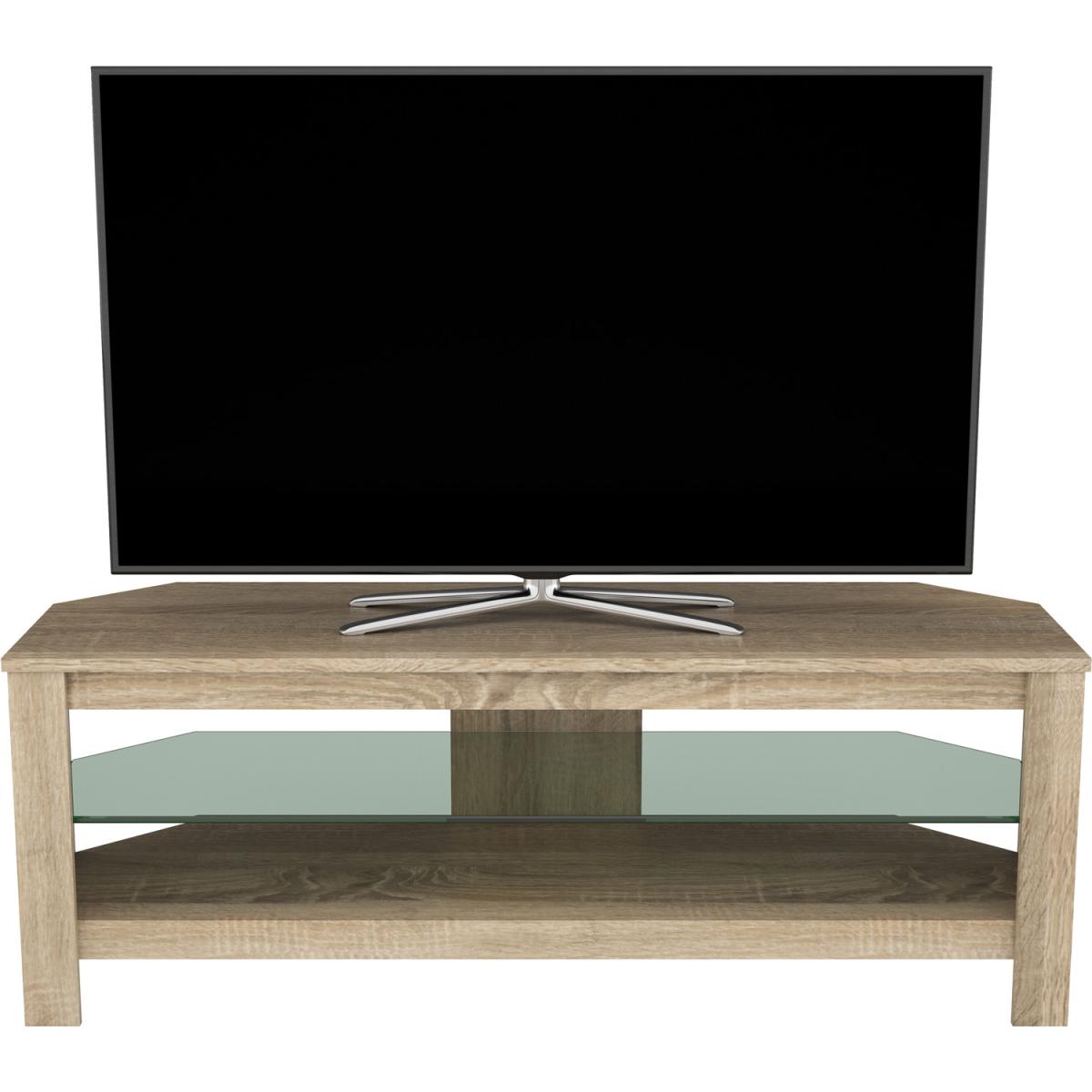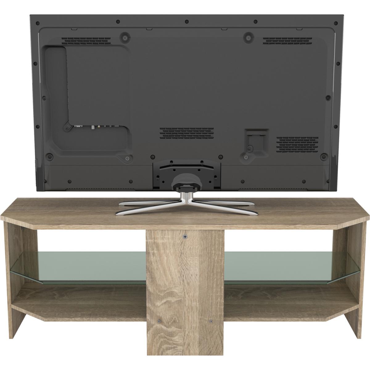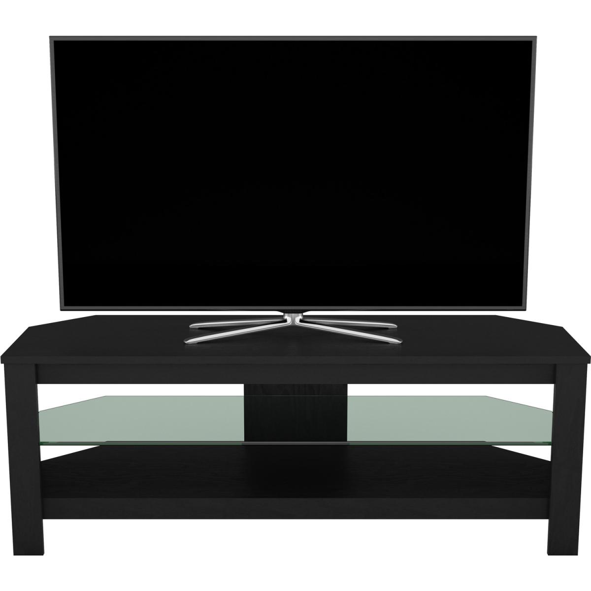The Calibre TV stand has a minimalist design making it the ideal piece of furniture to complement pre-existing decors. The shape of Calibre has been designed to fit equally well against a flat wall or in the corner of a room, giving you more flexibility with your room layout. The cable management panel at the rear of the stand allows you to keep your AV set-up looking smart. The internal glass shelf gives you more space to display your AV equipment and benefit from uninterrupted use thanks to the open design. Please note Maximum TV sizes are given as a recommendation only and do allow for some screen overhang, the exact dimensions of the TV's pedestal feet should be checked to ensure desired fit prior to purchase