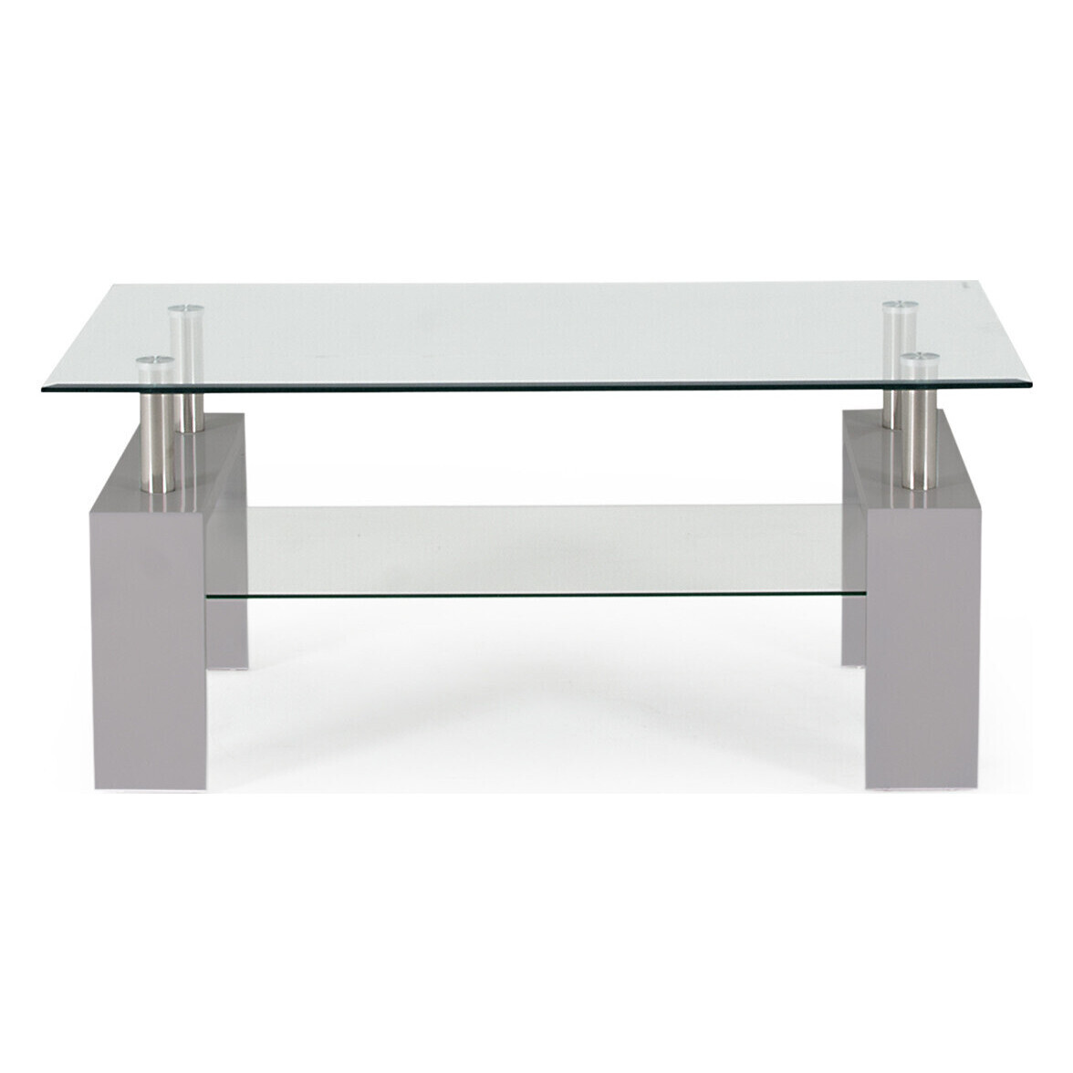 The Calico Coffee Table is an elegant and almost illusory addition to any modern living space. Its combination of stylish transparent tempered glass with a simple frame creates the illusion of light and space and is a very modern addition to the home. Team with other pieces in the Calico Collection High gloss grey frame Elegant clear tempered glass tabletop Smart stainless-steel uprights further enhance the contemporary feel of the design