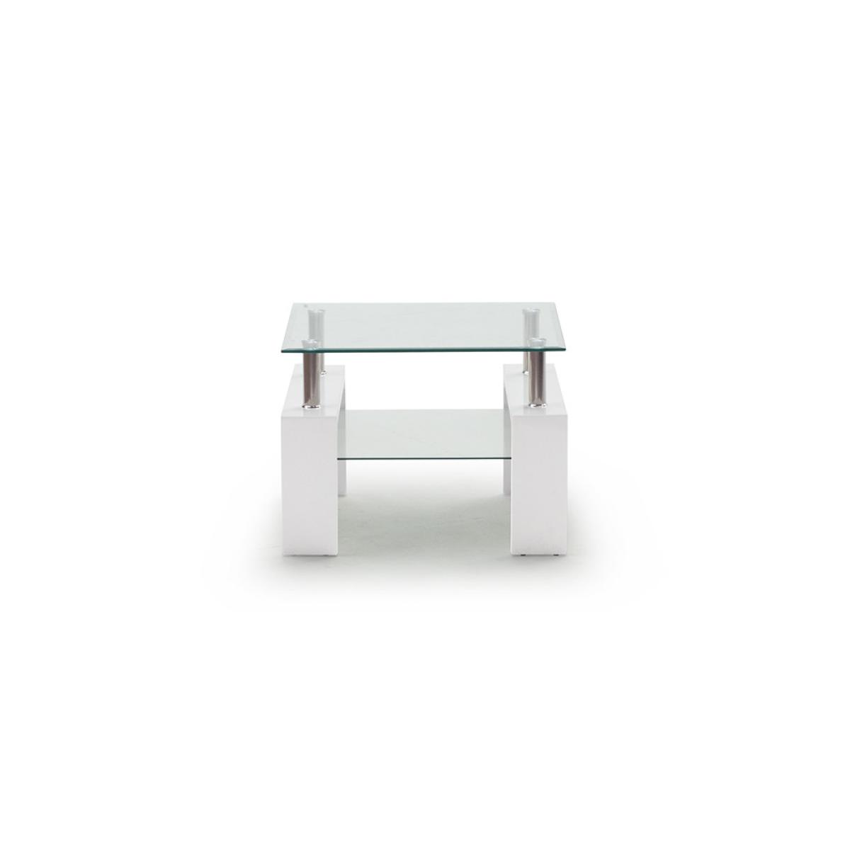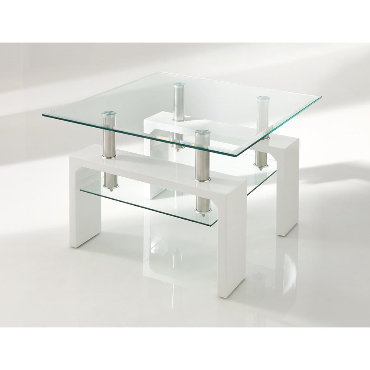 The Calico Lamp Table is a stunning and elegant accent piece which works beautifully in many modern interiors. The sleek and glossy white frame combines beautifully with the transparent tempered glass tabletop, to create a beautiful accent piece for your living space. Stylish steel uprights complete the modern look Glossy white frame is eye-catching and easy-to-coordinate Beautiful tempered glass tabletop creates illusion of space and light Matches up with the extensive Calico Collection