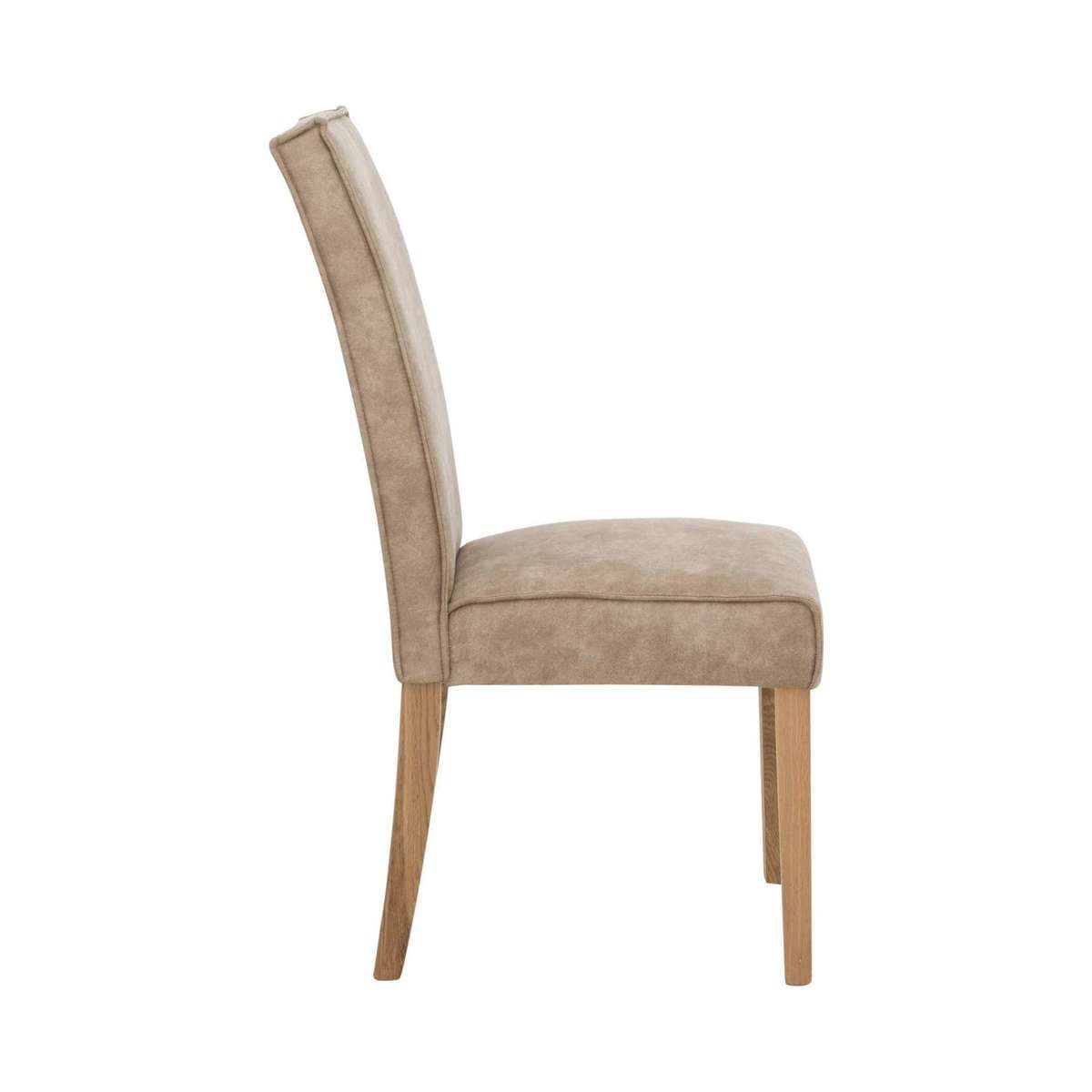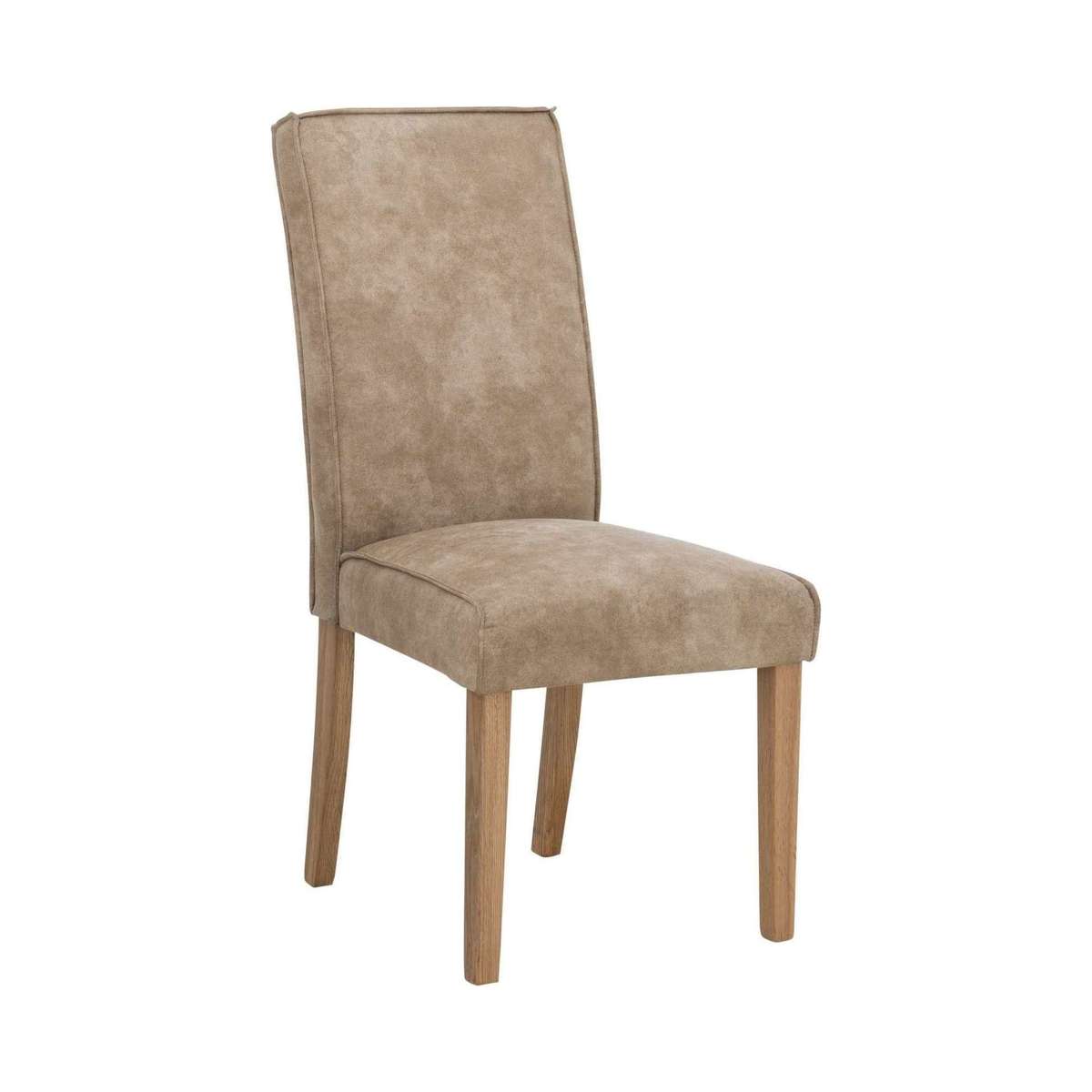 The chairs in the Furnitureland California pair of faux suede dining chairs are the perfect combination of elegant style and modern comfort.;Fully upholstered in beige faux suede, chairs are well padded and have gently curved backs, for support. Sturdily built, they have solid oak frames and legs, and are finished with a protective clear lacquer. Design elements like the slender legs and upholstery piping ensures that these chairs are right at home in a formal dining room, yet their relaxed vibe makes also them excellent choice for a welcoming kitchen.;The Furnitureland California pair of faux suede dining chairs is part of the Furnitureland California collection of living and dining room furniture. Just one of several styles of chairs, this pair looks fantastic with either the Furnitureland California extending rectangular dining table or the Furnitureland California extending round dining table.;Did you know? Oak is natural with characterful knots and markings, every piece of furniture is unique.