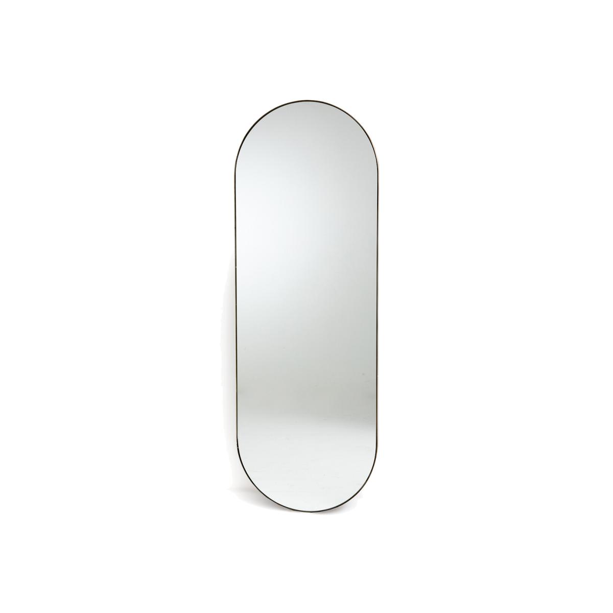 The Caligone aged brass mirror has a charming oval shape. Product Details • Brushed metal structure with aged brass finish • 2 hooks for vertical or horizontal wall mounting (screws and plug not supplied)Dimensions • Width: 53cm • Height: 150cm • Thickness: 2cm • Sold pre-assembled. Dimensions and weight of parcel • L159.5 x H62.5 x D7.5 cm • 18.3 kg