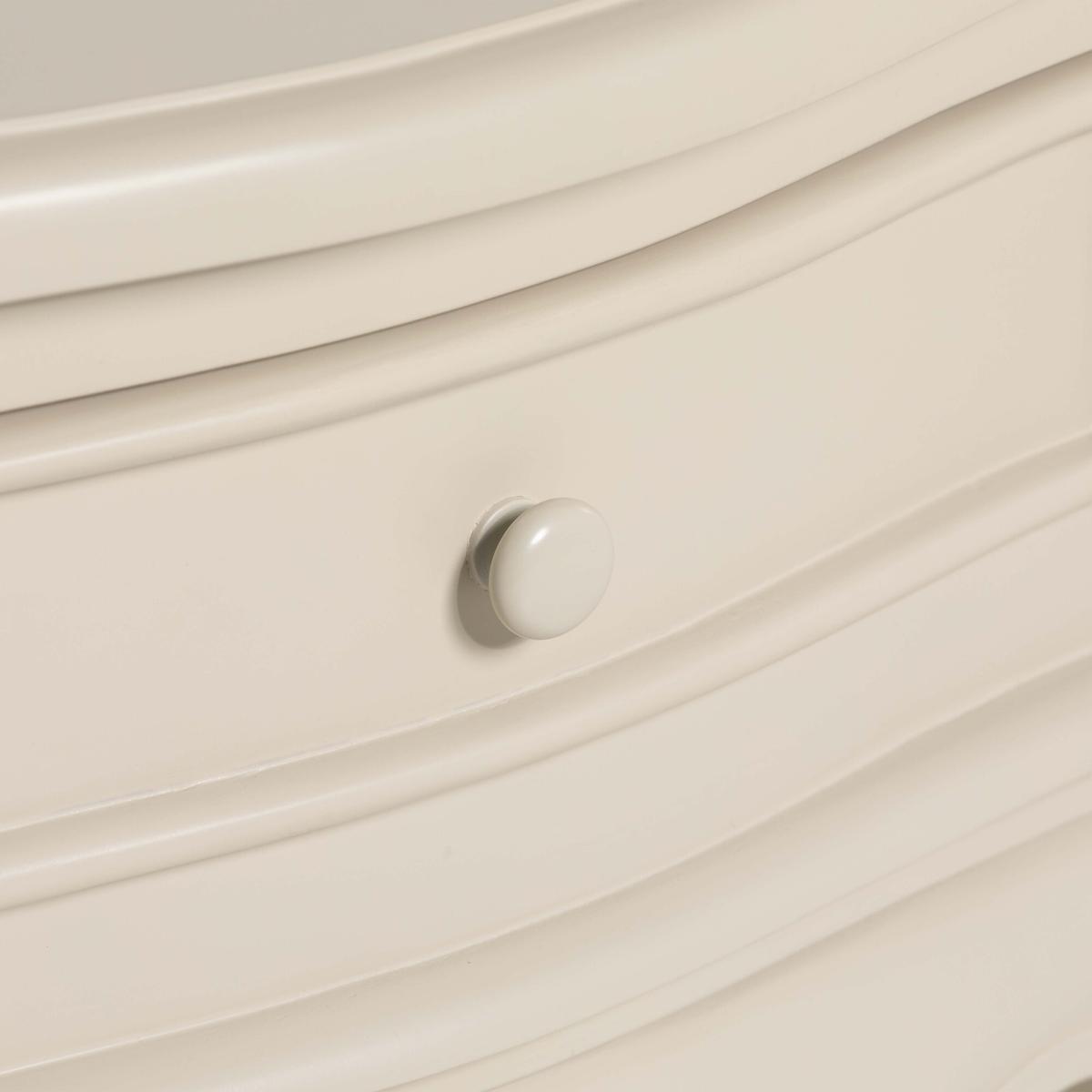 The Calista 1 Drawer Bedside Table is a refined accent piece with timeless appeal. Made from solid mahogany and engineered wood, it showcases delicate curved legs, a single drawer with a wooden knob, and an open shelf below for extra storage. Finished in a soft off-white, it’s ideal for smaller spaces or to complement the full Calista bedroom collection.