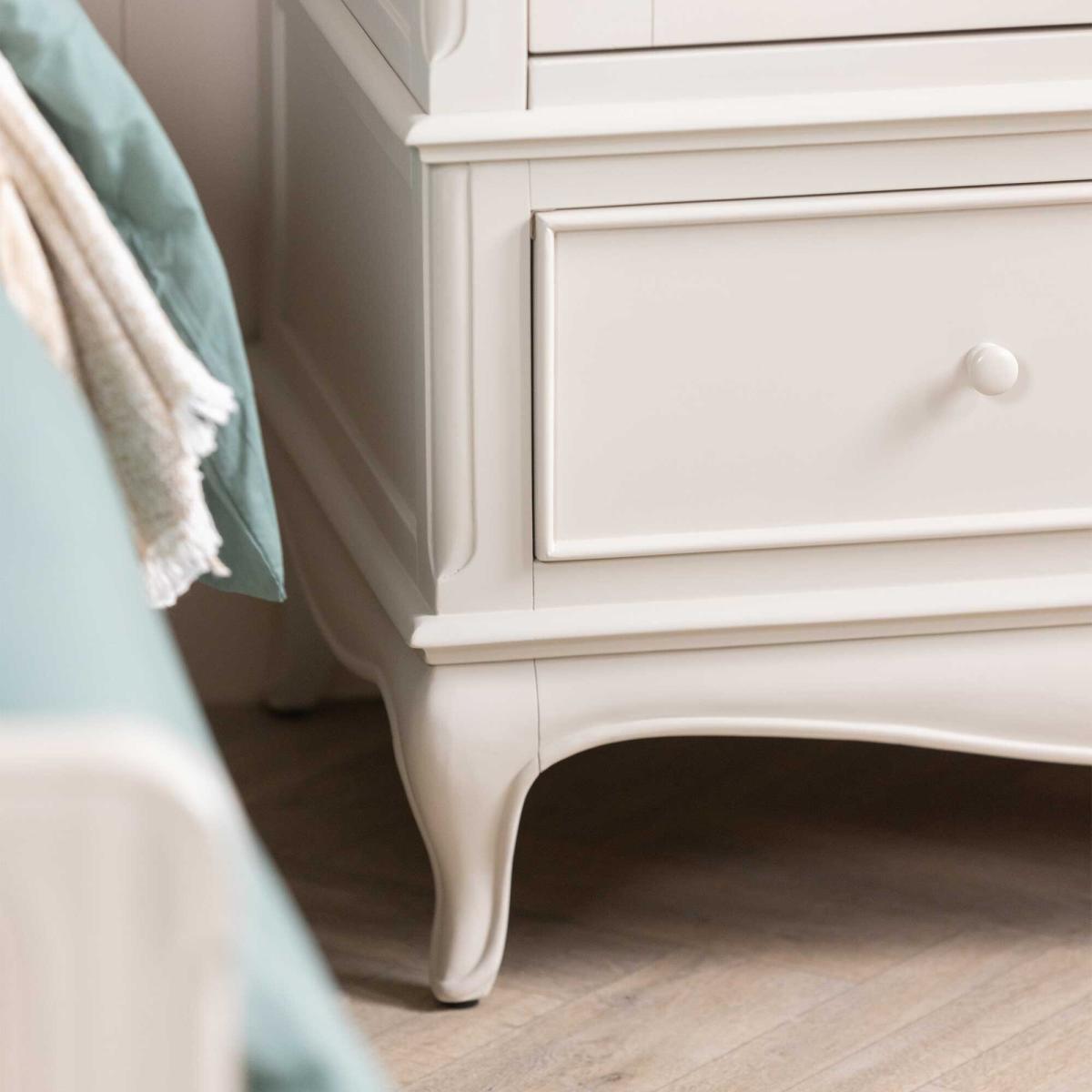 I love this wardrobe for its timeless, classic design and versatile white wood finish, which makes it easy to incorporate into a variety of interiors-from traditional cottages to more contemporary spaces. Its double doors provide ample storage, and the additional drawers at the base offer practical space for accessories or smaller items. Stylistically, pairing this piece with soft, muted tones or natural textures can create a calm, elegant bedroom scheme. Practical tips include styling inside with organisers or baskets to keep things tidy, and placing it against a feature wall to make it a focal point. It works particularly well in light-filled rooms where the white finish can reflect natural light, helping to keep the space feeling fresh and airy.