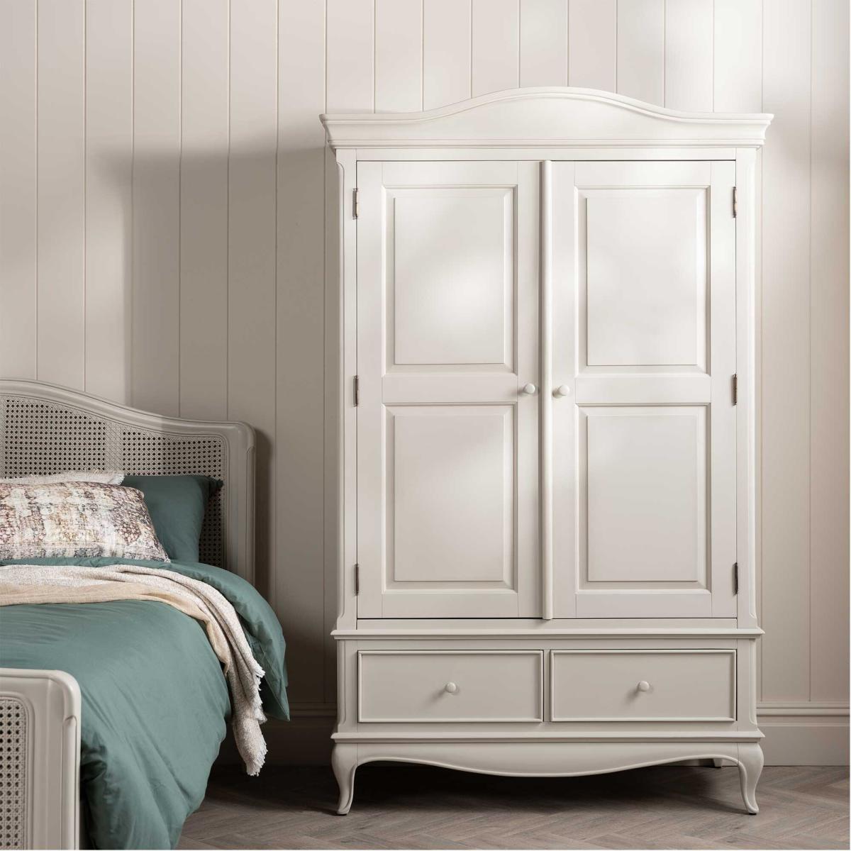 The Calista Double Wardrobe brings classic elegance and practical storage to your bedroom. Beautifully crafted from rich mahogany and engineered wood, itrsquo;s finished in a soft off-white hue that enhances its refined, French-inspired silhouette. Behind the paneled double doors lies ample hanging space, while two deep drawers offer extra room for folded items. Its curved base and subtle detailing make it a timeless piece for traditional and country-style homes.