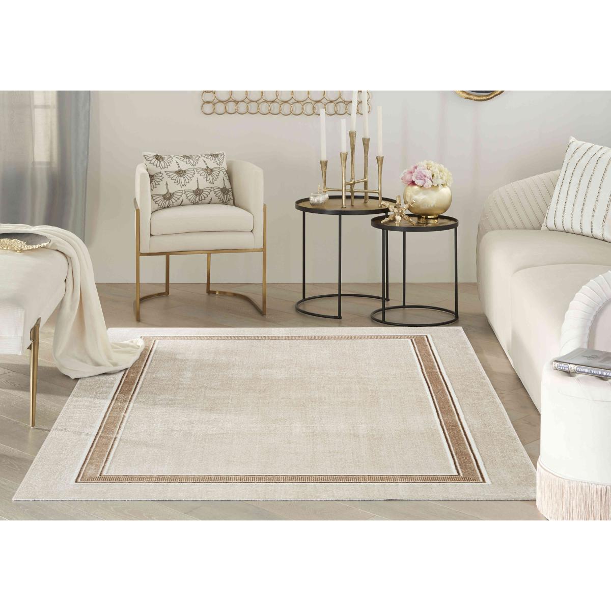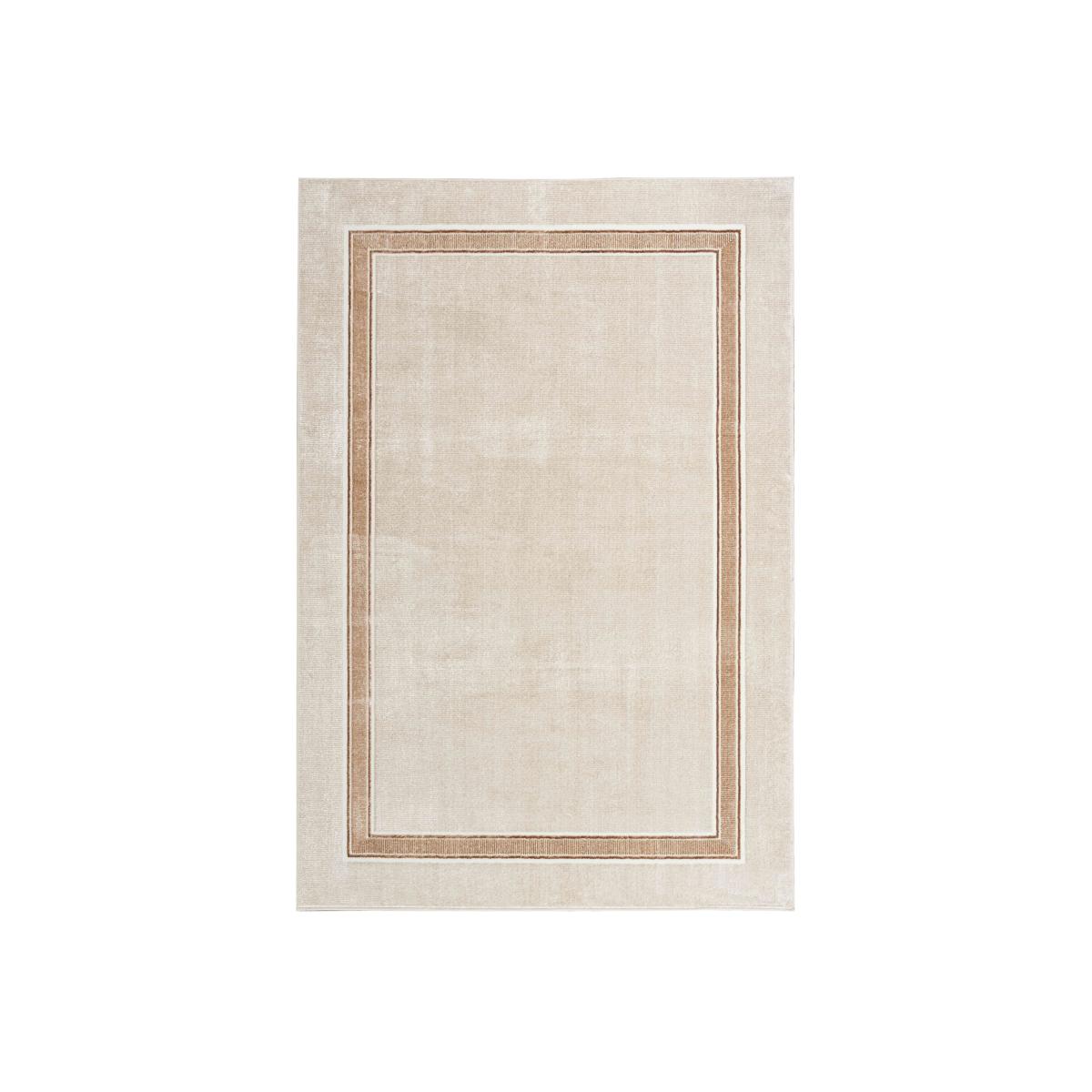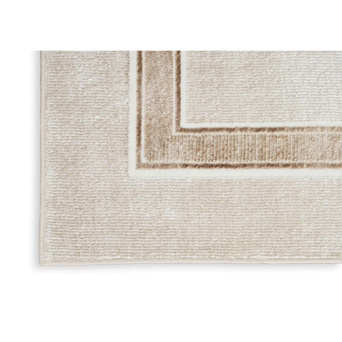 Classic meets glam in this beautiful bordered rug with a shimmering surface sheen that changes tone under different light. Its ivory, gold and silver tones add a luxurious look to any room. Why you'll love it This classic bordered rug has an ultra-glam feel that’s chic and modern. Subtle all-over ribbed pattern gives this rug depth and texture. In ivory with a silver and golden brown border. Finished with a metallic sheen that changes tone in different lighting. In a choice of sizes. This rug is part of the Furniture Village home accessories collection. What you need to know Polyester. For indoor use only. Vacuum regularly using a suction vacuum cleaner. Blot stains; do not rub.