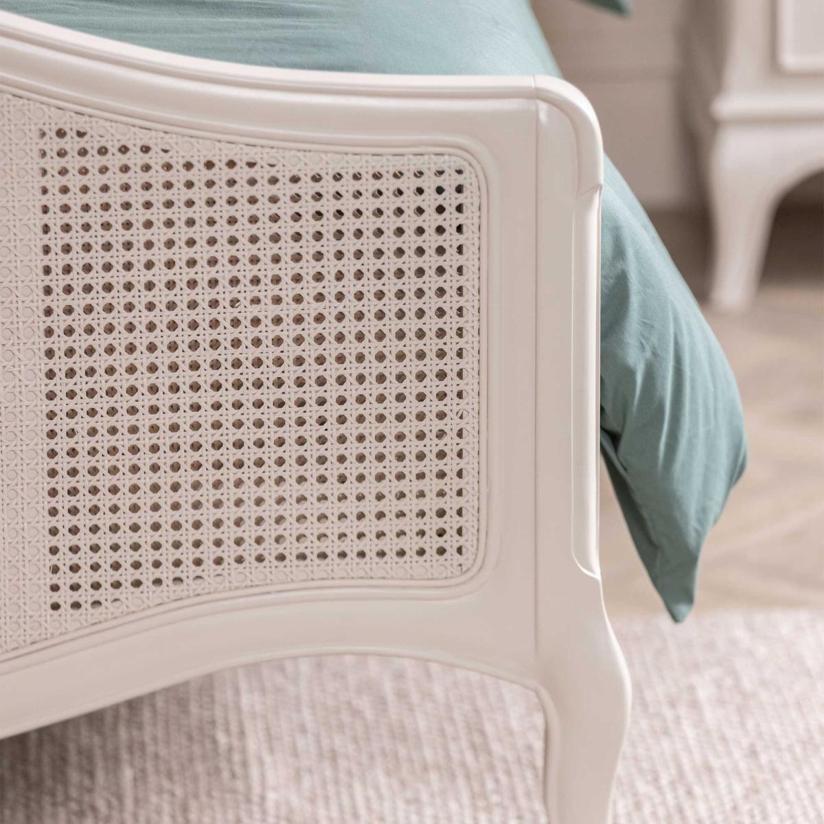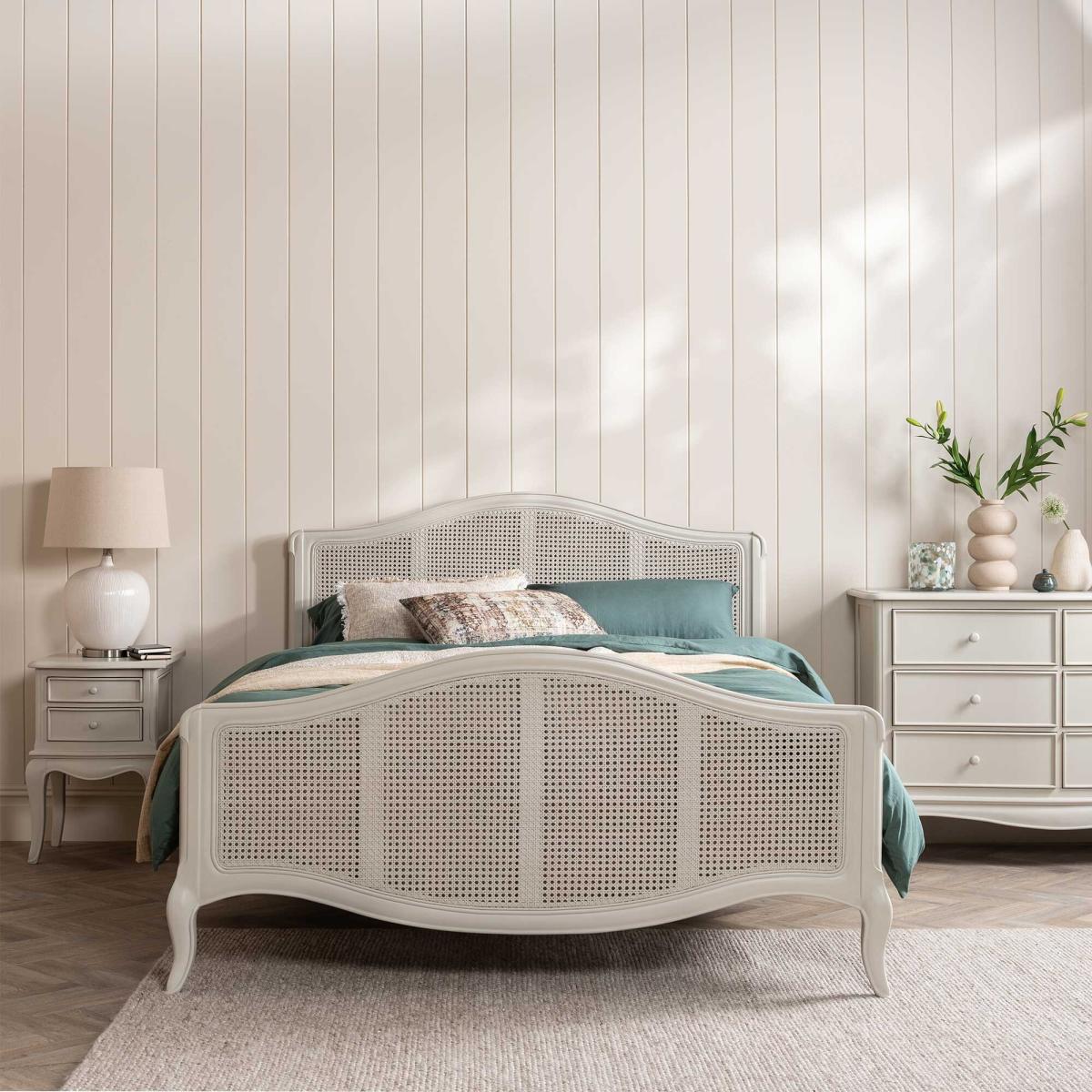 I love this bed for its classic, timeless appeal and versatile silhouette, making it a great centrepiece for both traditional and contemporary interiors. The Calista superking frame’s woven rattan detail adds texture and visual interest, while its neutral tone allows it to complement a wide colour palette. It works particularly well in bedrooms styled with coastal, boho, or shabby chic themes, but can also bring warmth and softness to more modern spaces when styled with crisp linens and layered textiles. For practical styling, consider keeping bedding neutral or in soft pastel shades to highlight the rattan, and add a few decorative cushions or throws for added comfort and personality. Its size makes it a real statement piece, so keep surrounding furniture minimalist to avoid overwhelming the space.