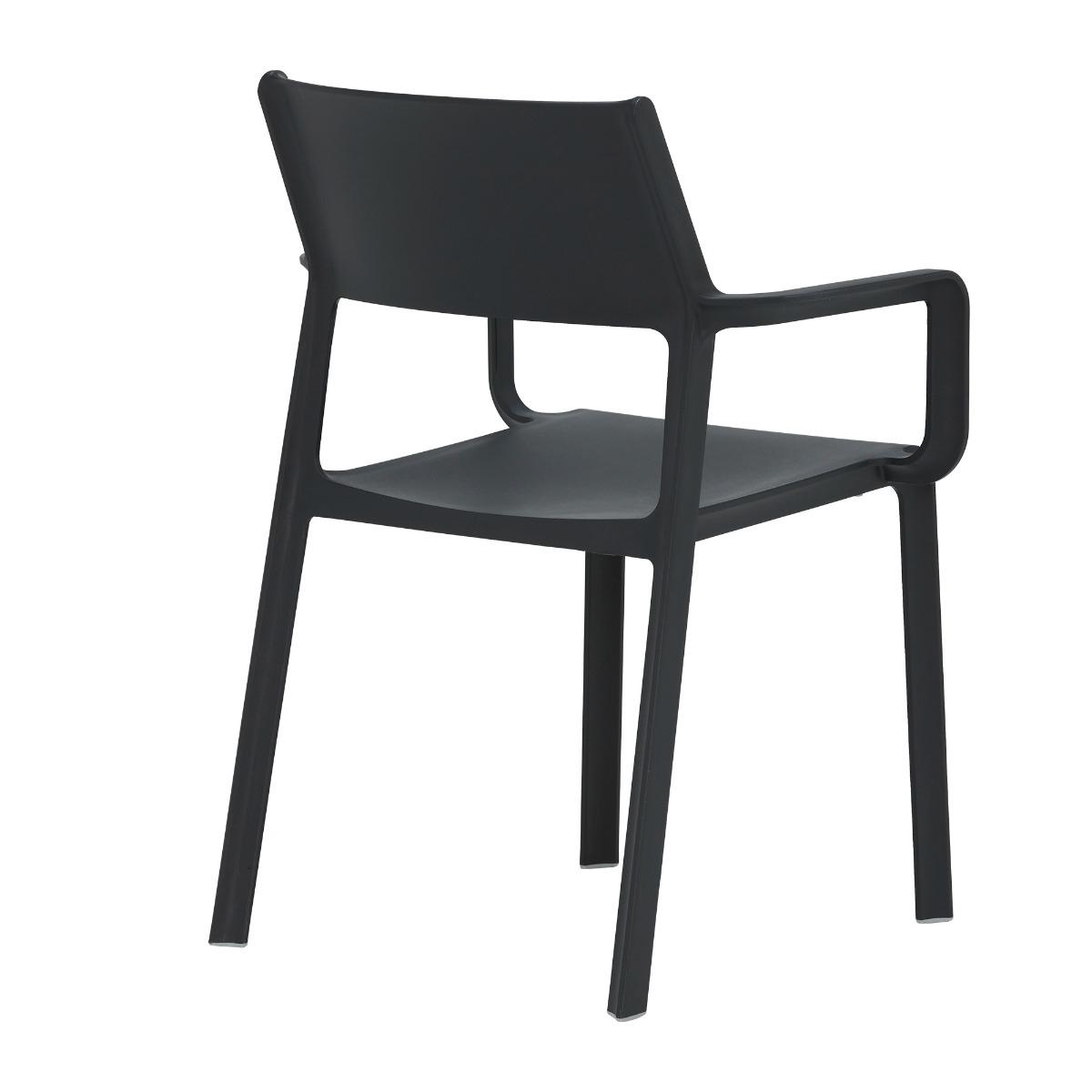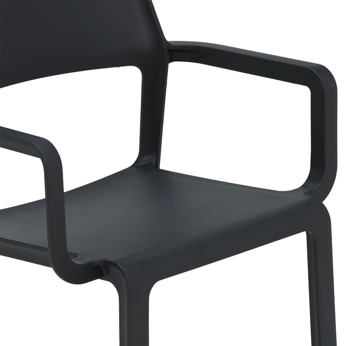 Design. The sculptured design of the Anthracite Calisto Garden Dining Chair adds a modern yet timeless look to your outdoor dining setting; creating an idyllic location for summer get togethers. Formed from fibreglass resin with UV protection, and with features such as non-slip feet, the Calisto Garden Dining Chair in Anthracite is durable and reliable.