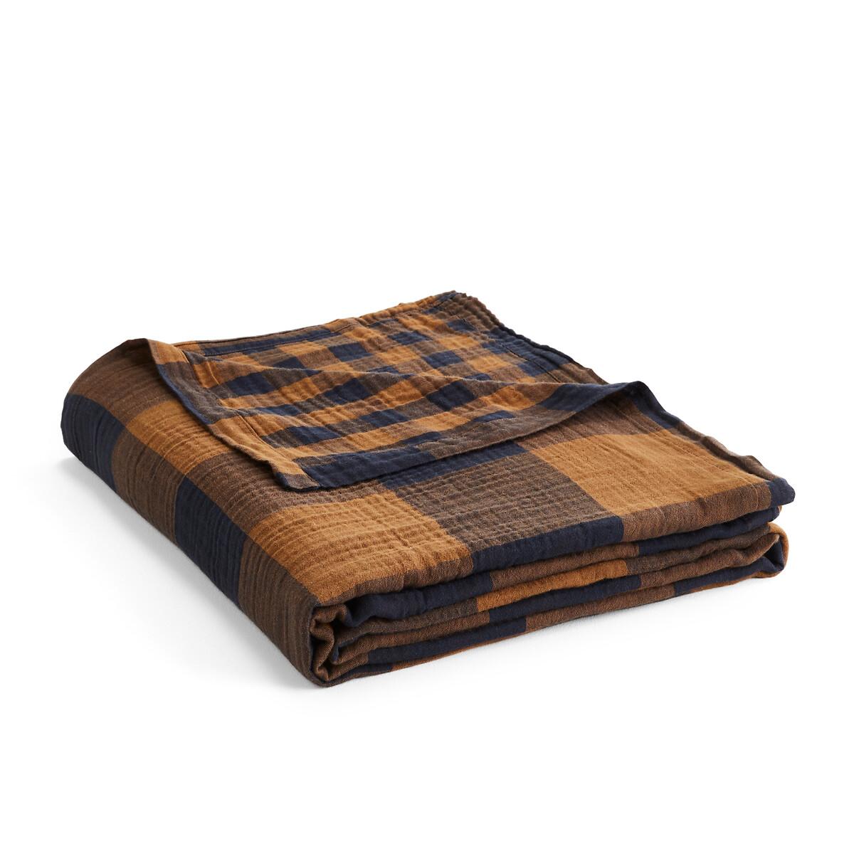The Calix cotton muslin bedspread has a comforting softness, featuring small and large check patterns on either side. Made in Portugal. Cotton muslin is light, supple and super soft. Naturally textured, they do not require ironing and become more beautiful over time. Product Details • 100% cotton • Cotton muslin • Two-tone check print • Bias hem • 2 different sides: small or large check pattern. Care Advice • Washable at 40°CSizes • 140 x 190cm • 180 x 230cm • 230 x 250cm • Made in Europe. • OEKO-TEX® Standard 100. Standard 100 certification by OEKO-TEX® tests textile products for harmful substances via an independent, international label.