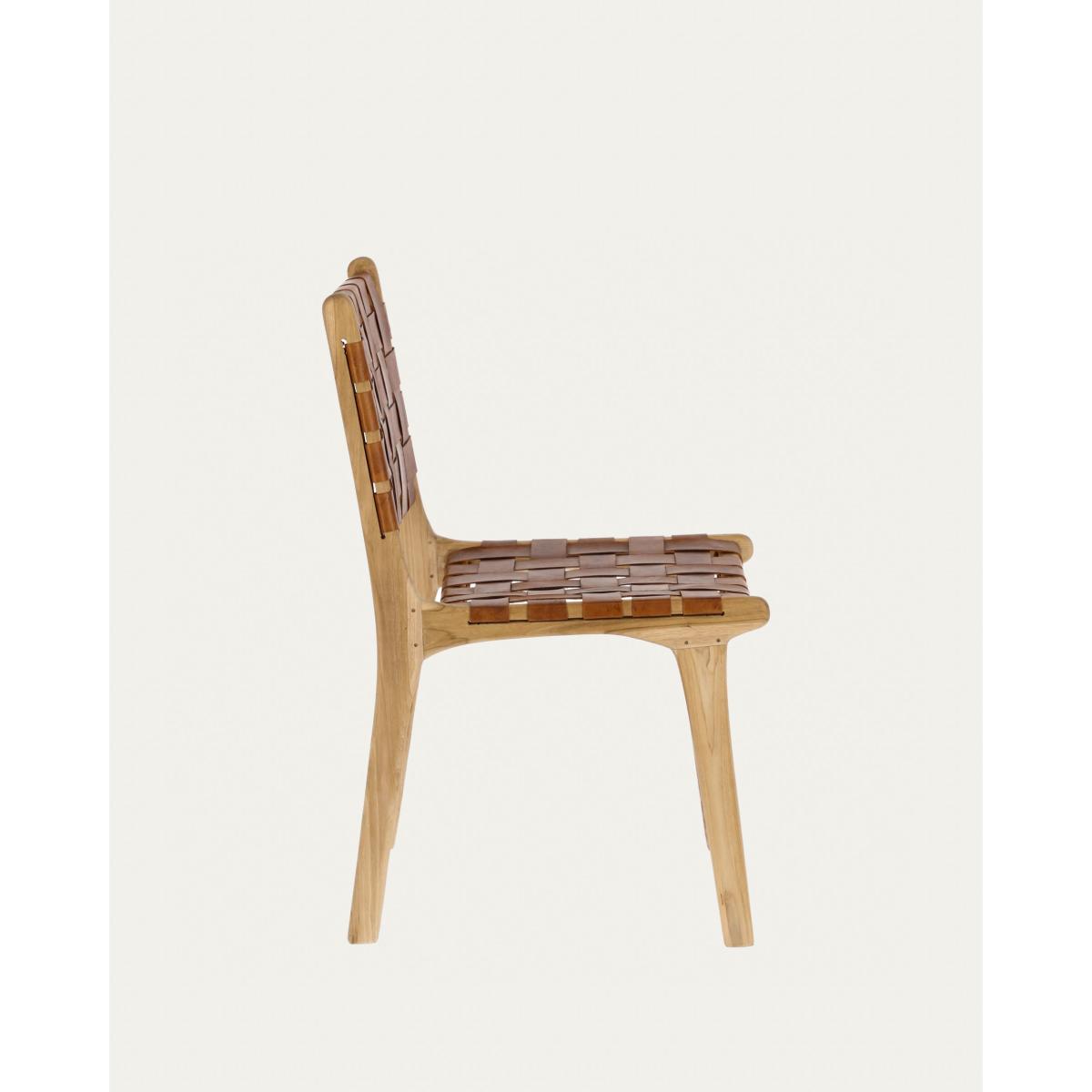 I’m a fan of the Calixta for its straightforward mix of solid teak and woven leather - it brings warmth without fuss. It sits equally well in Scandi-inspired, mid-century or relaxed contemporary spaces. For styling, tuck one at a simple desk in a study, or use two either side of a pared-back console. A neutral woollen throw or a small cushion in muted tones will soften the lines, while a low planter or sculptural lamp beside it helps balance the profile.