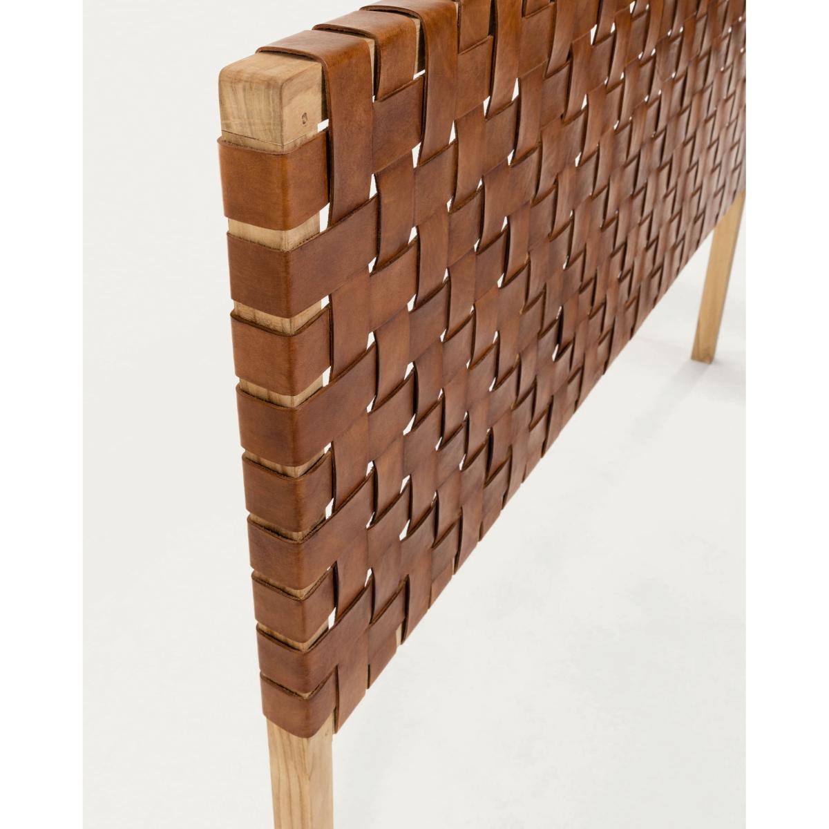 Calixta solid teak wood and leather headboard, for 150 cm beds