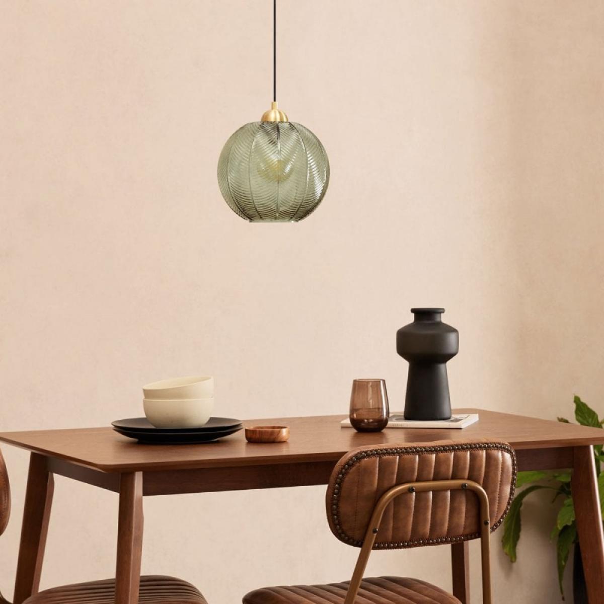 I love this pendant light because of its bold yet elegant design, mixing the lush green glass with gold accents creates a sophisticated look that works beautifully in both contemporary and vintage-inspired interiors. It’s particularly effective in spaces with high ceilings, where it can act as a statement piece, but it also pairs well with natural materials like wood or linen. For practical styling, consider hanging it over dining tables, kitchen islands, or in a hallway to add a pop of colour and instant visual interest. Keep surrounding decor minimal to let this piece really shine and avoid competing elements that might overwhelm its intricate leaf-like pattern.