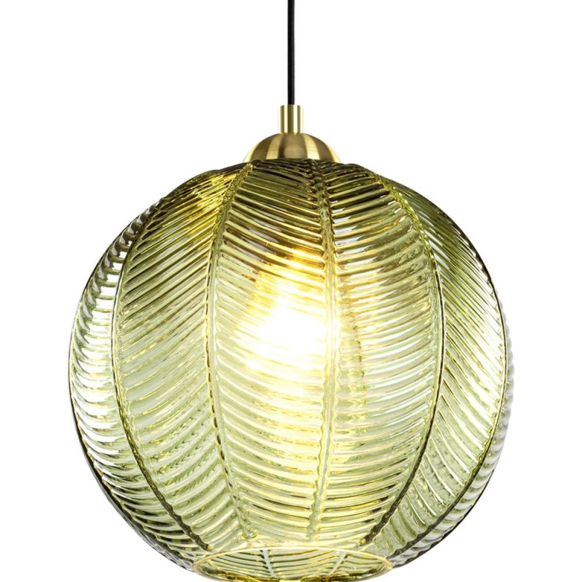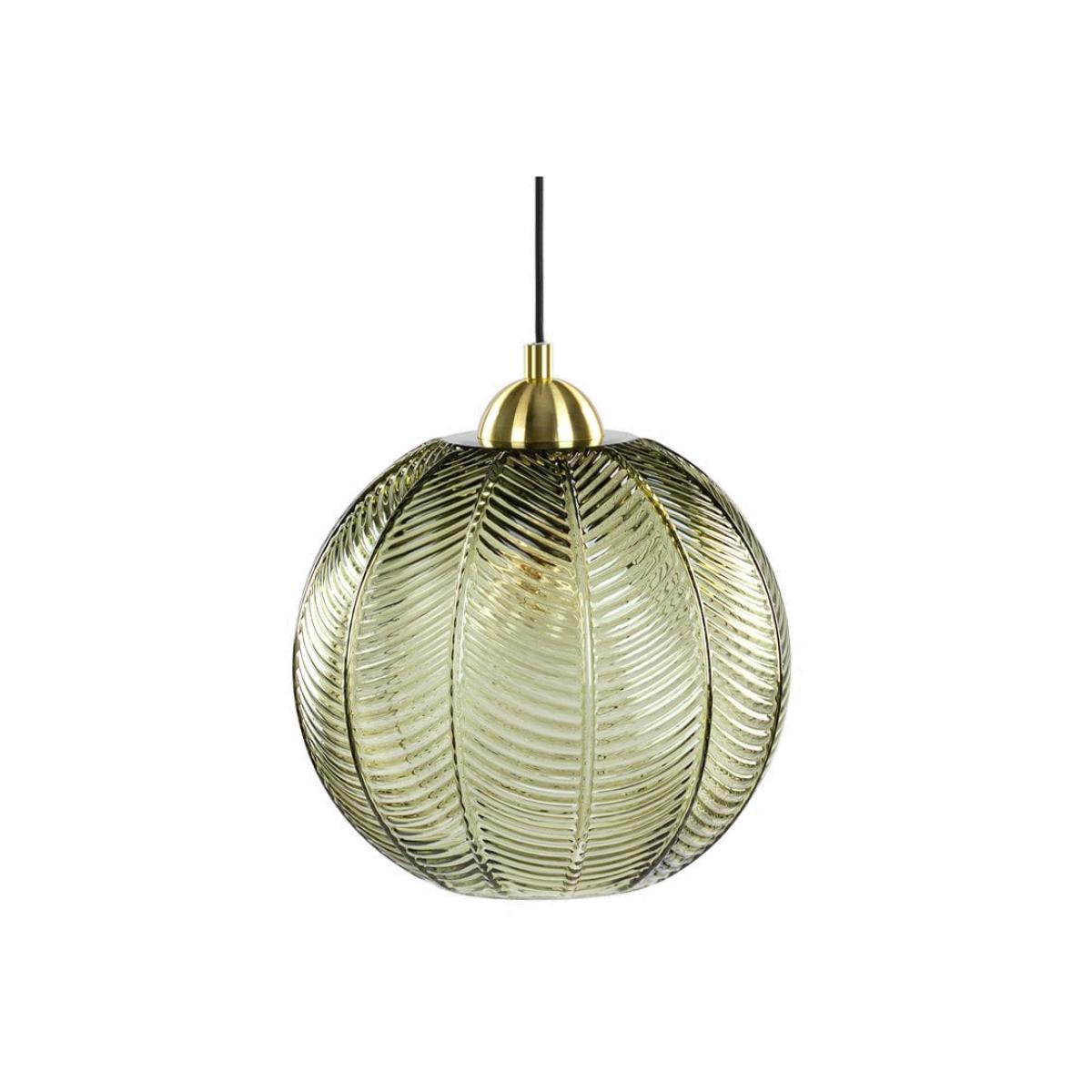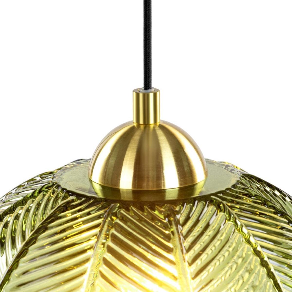 Unmistakable contemporary piece designed by our Cult Design Team, the Calla green glass pendant light features a curved glass shade with a textured palm leaf print for a tropical feel. We love the retro green hue teamed with brass fixture that adds a sleek modern touch to your home interior.