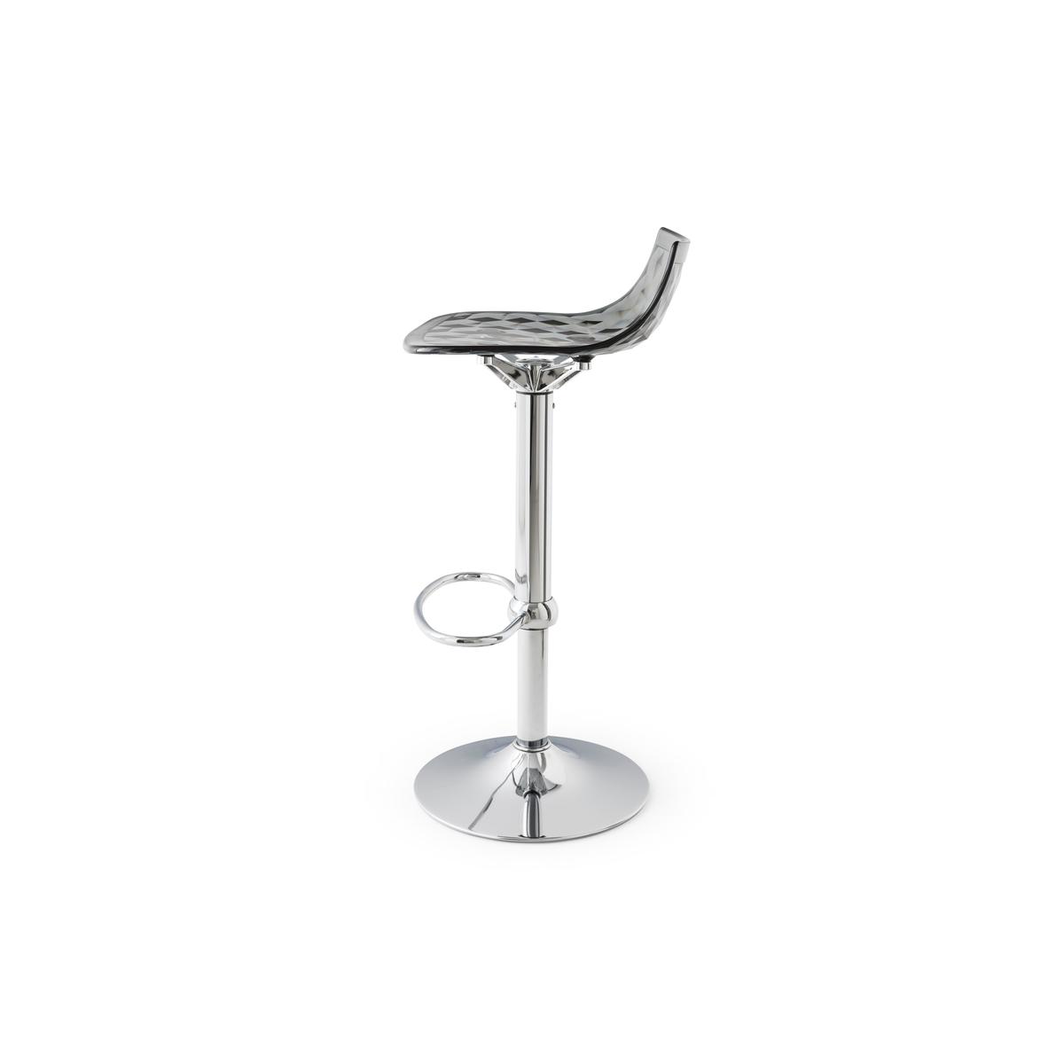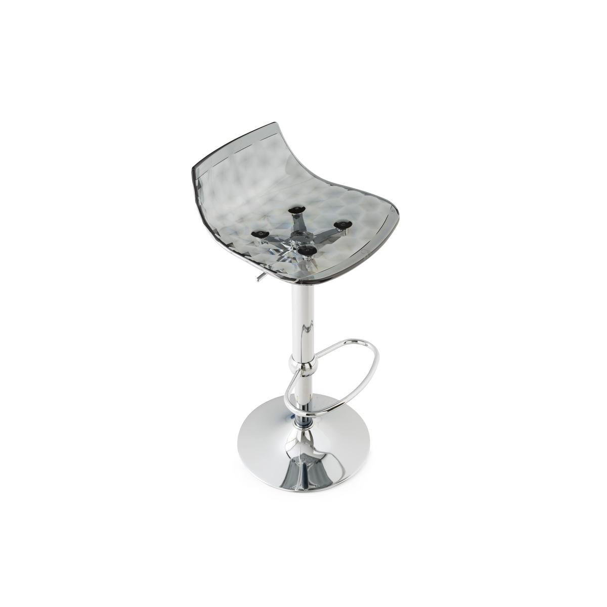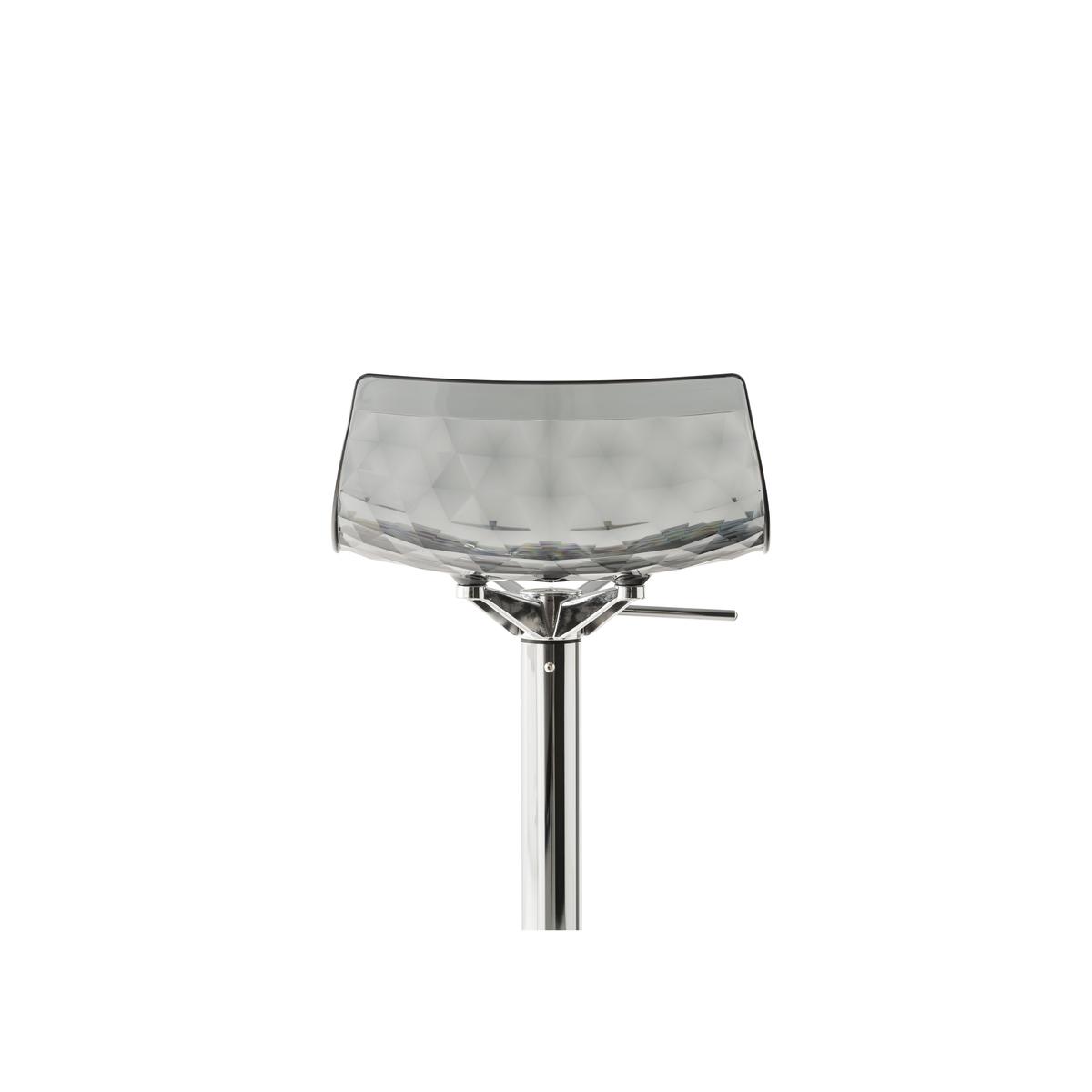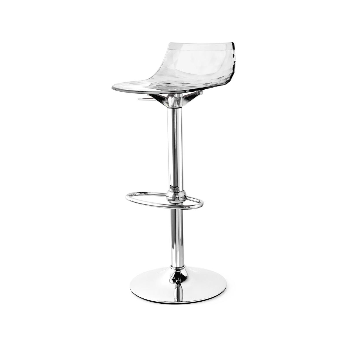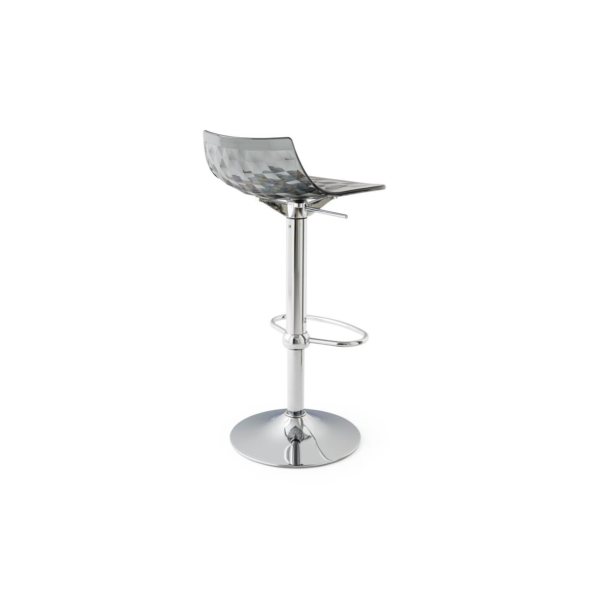 Ultra-modern bar stool from Calligaris. Swivels, and fully height adjustable with gas air lift mechanism. Crystal design technopolymer seat in a choice of colours. Moulded seat is comfortably contoured. Hollow tubular stabilised steel base with a shiny chrome finish. Solid foot rest is integral to the sleek, modern design. Italian style for the contemporary home