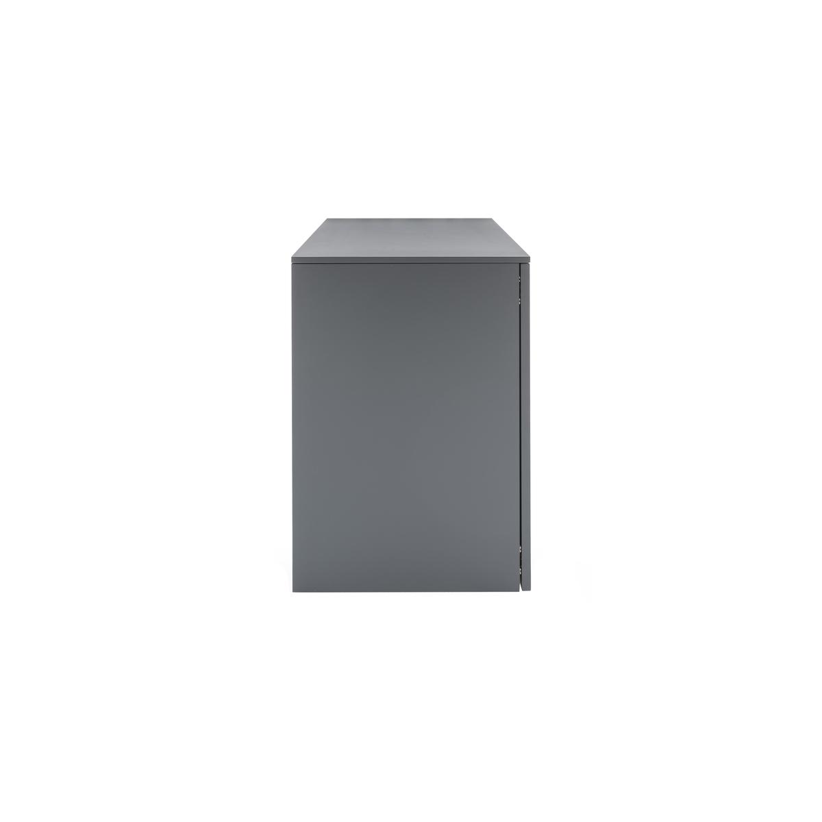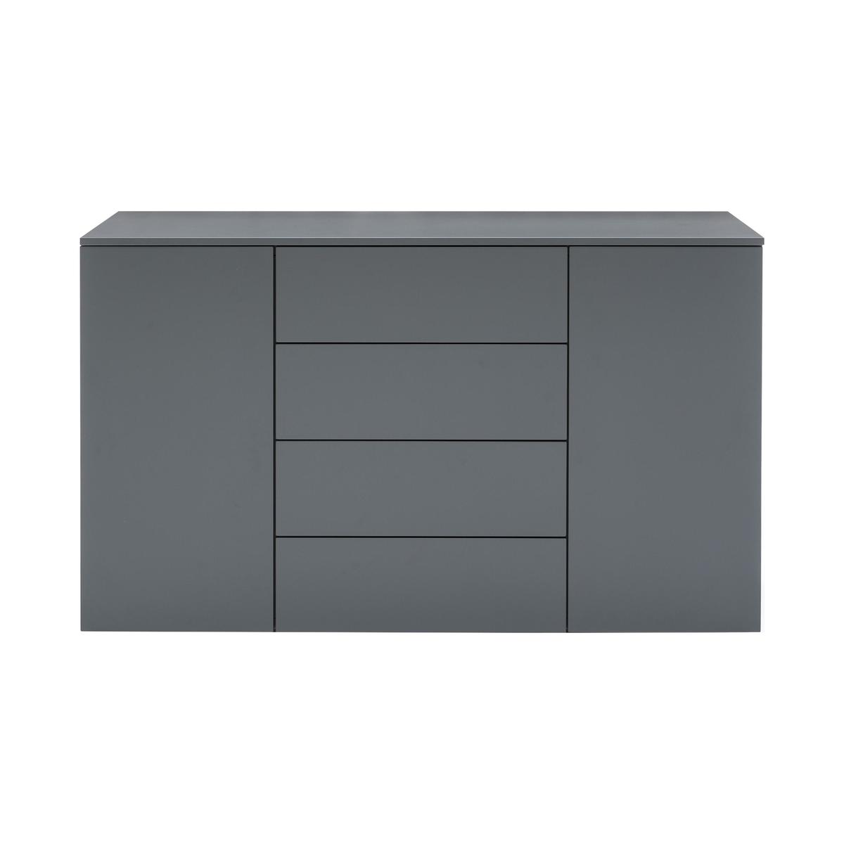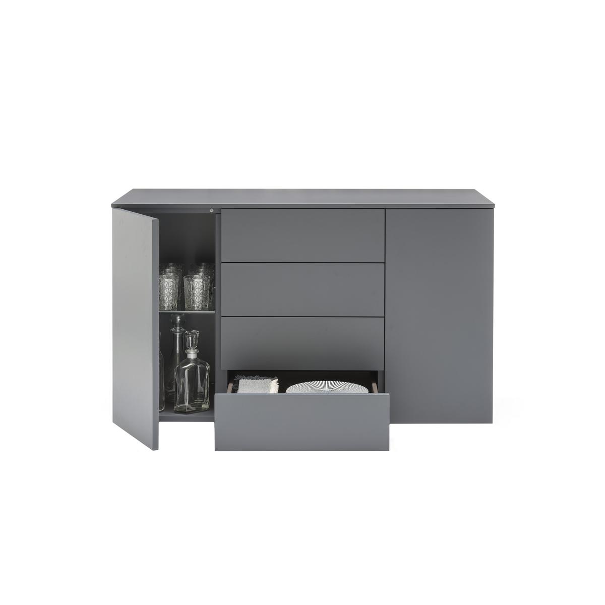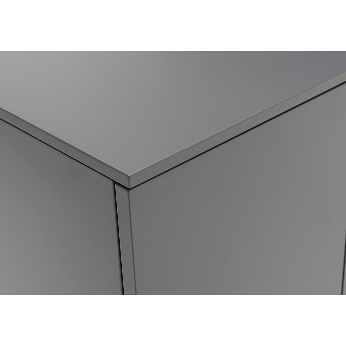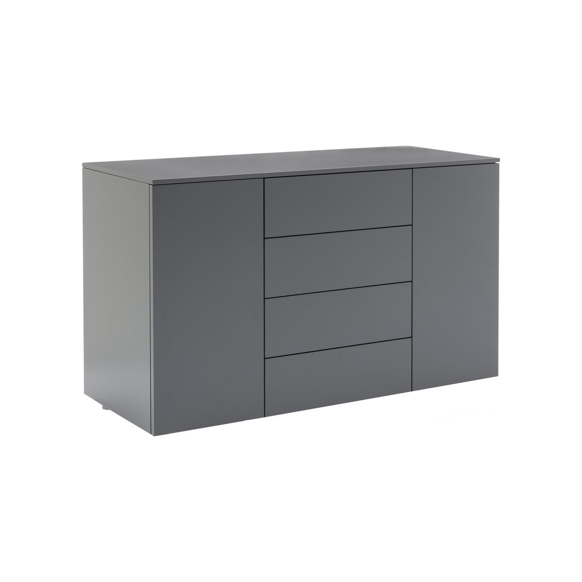 The modern Calligaris Baron sideboard is part of the sophisticated and contemporary Baron range of Italian style dining furniture. Sleek and beautifully designed, it’s finished in a gorgeous dark grey matt lacquer finish. This roomy sideboard has no visible handles, which helps maintain its clean lined silhouette. Two cupboards, each with a single glass shelf, sit on either side of four central drawers. The Baron sideboard perfectly complements the Baron extending dining table and chairs, and is part of the Private Label collection by Calligaris.